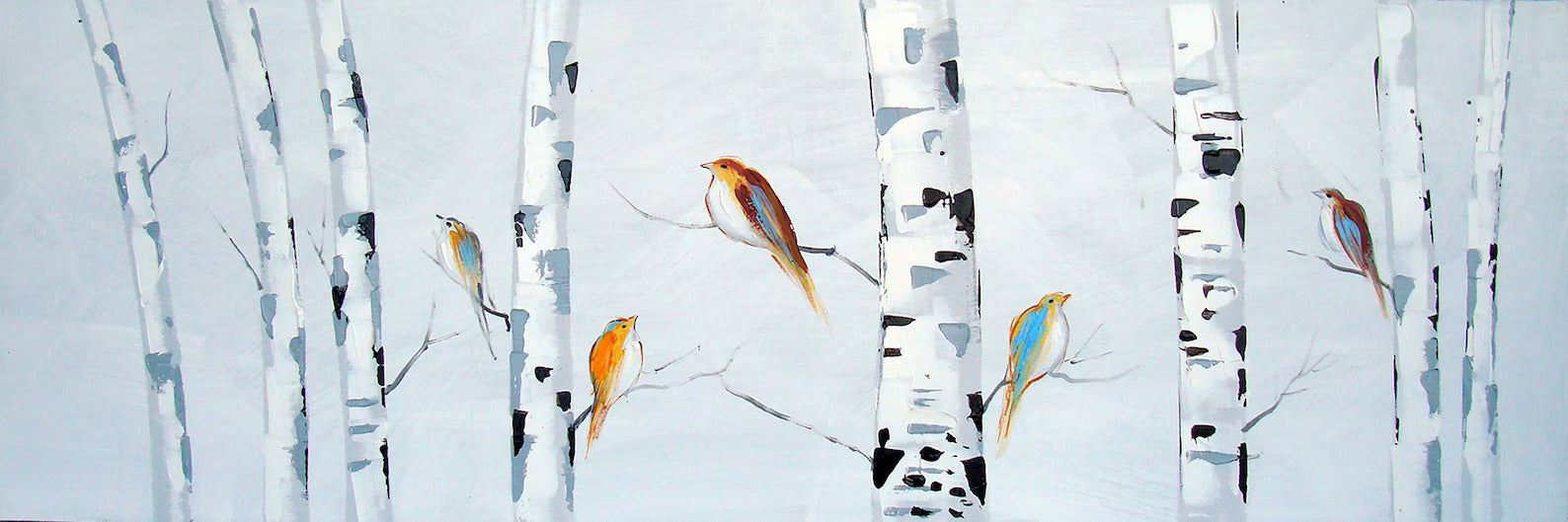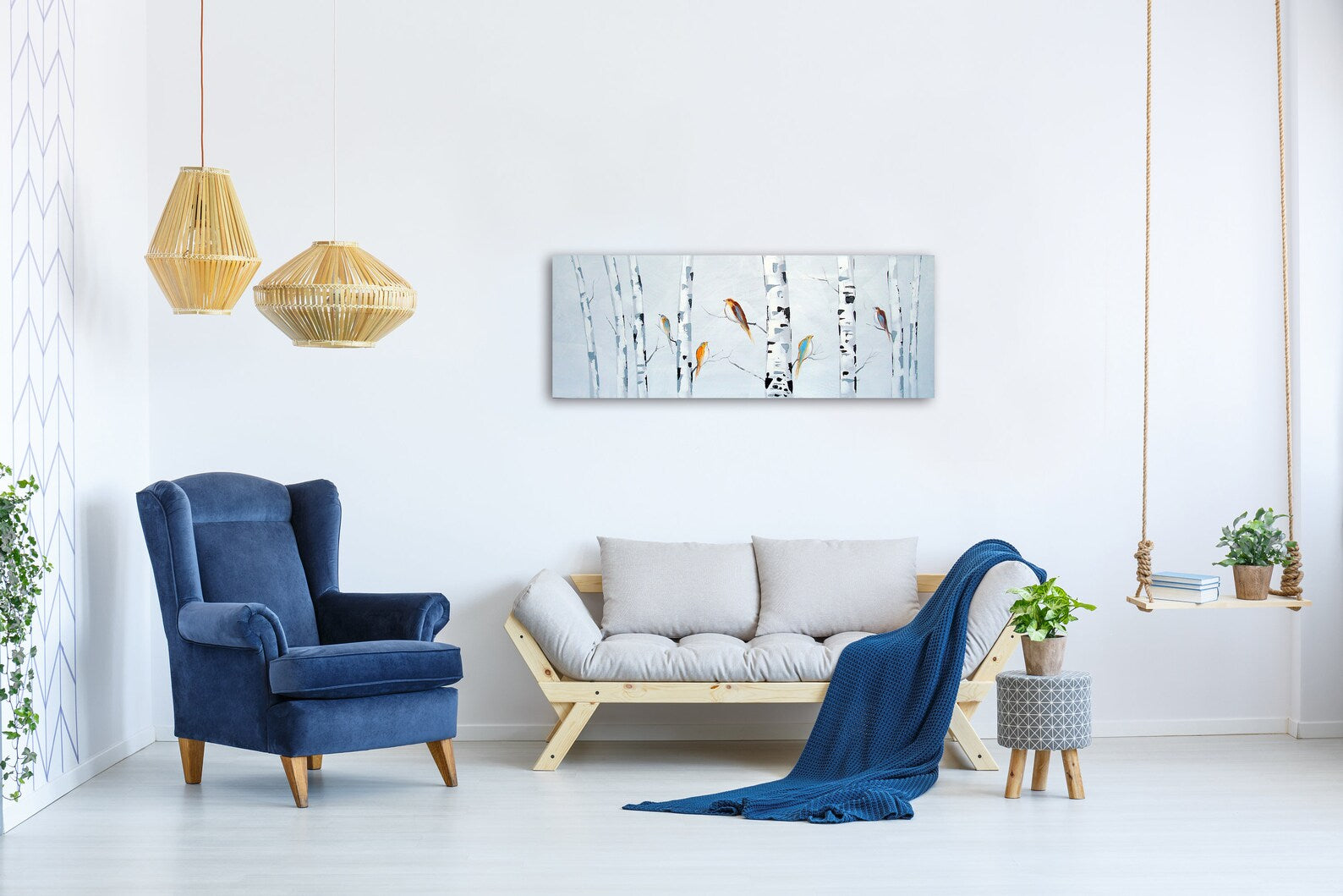 Hand-painted "Birds in the Forest" Modern art, oil painting on canvas, Wall art for living room, bedroom, office - Wrapped Canvas Painting