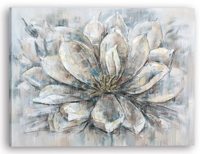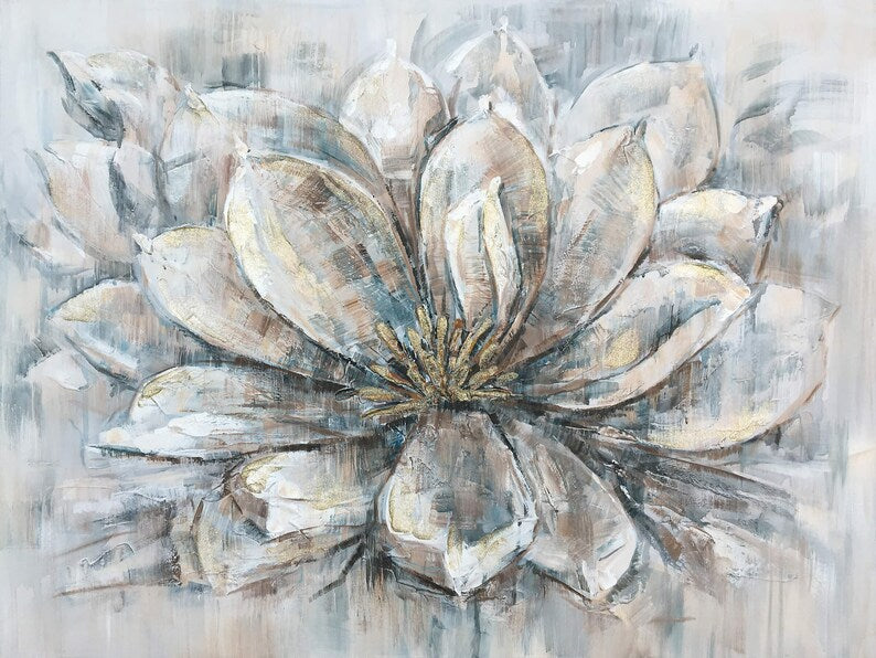 The flower of hand-painted contemporary artwork was made using oil paints on canvas.