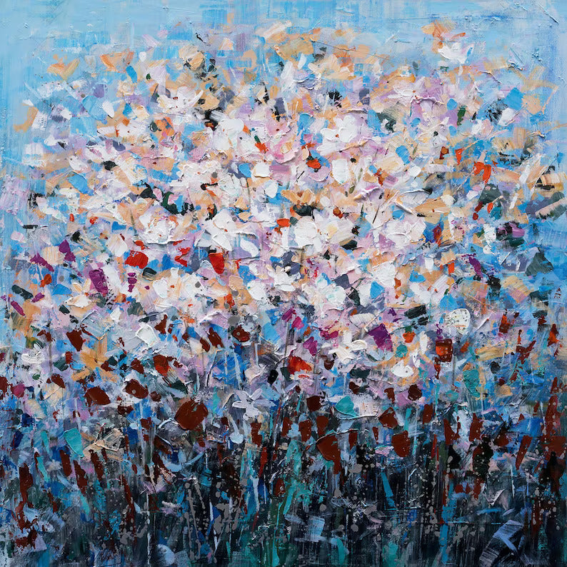 This beautiful piece of hand-painted contemporary artwork was made using oil paints on canvas. Perfect for your living room, dining room, or even your office space.