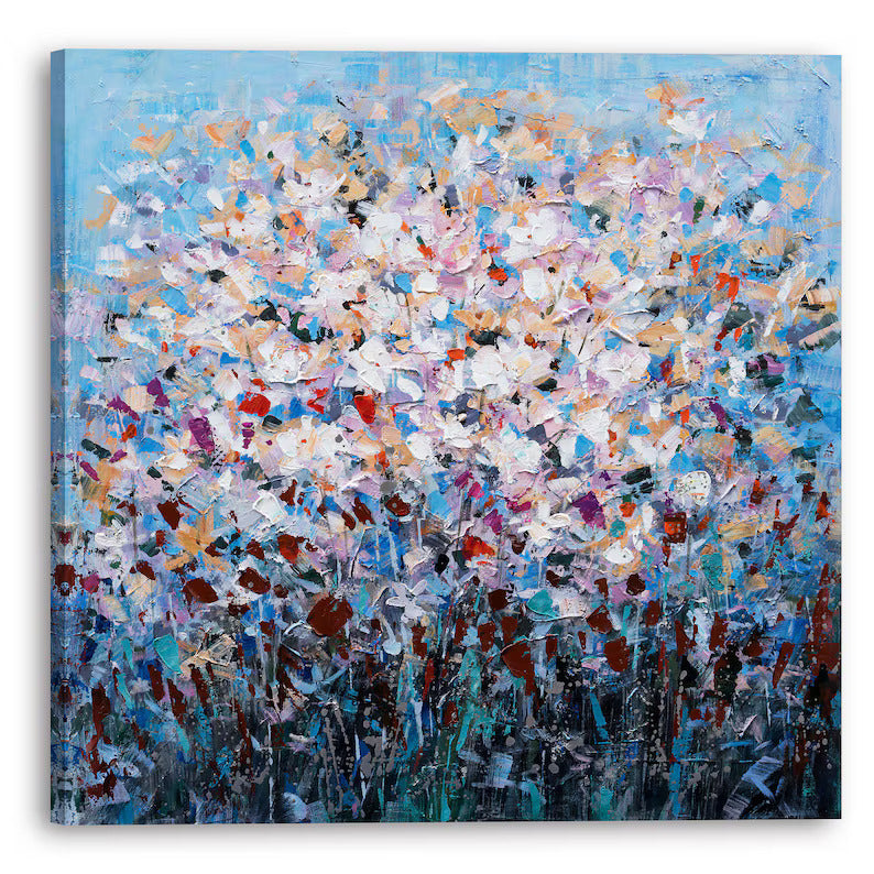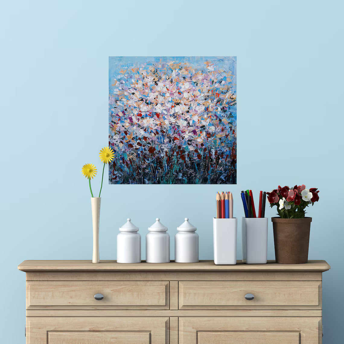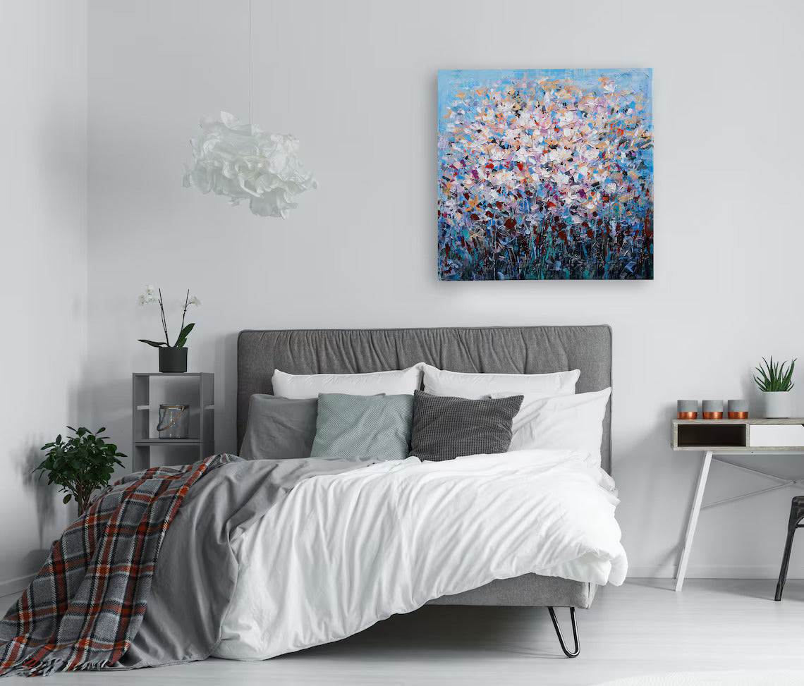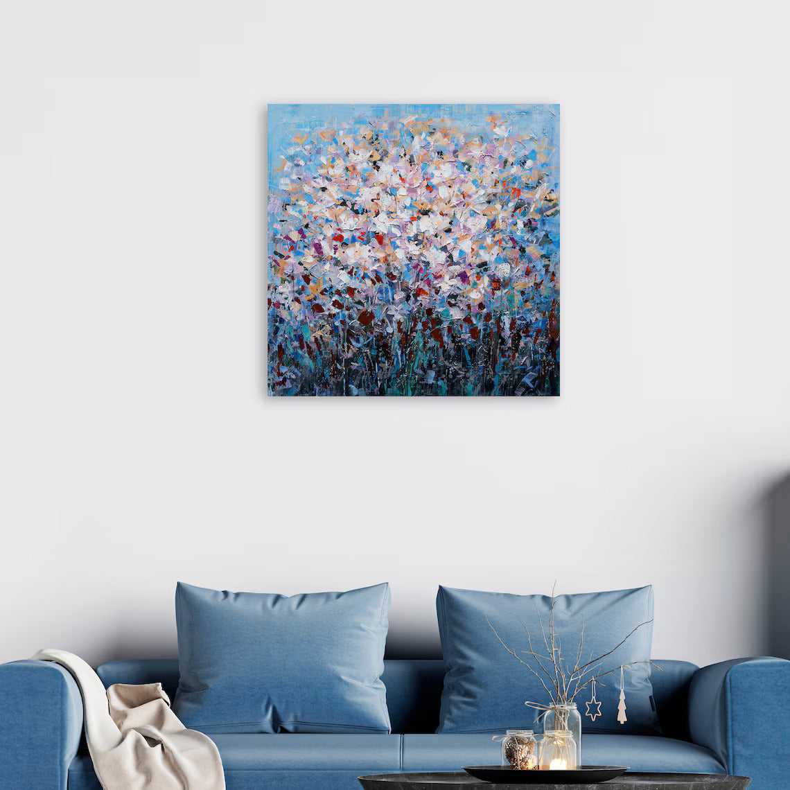 Hand-painted "Blue Flowers in clusters" original art, Wall Art for Living Room, Bedroom Office - Wrapped Canvas Painting