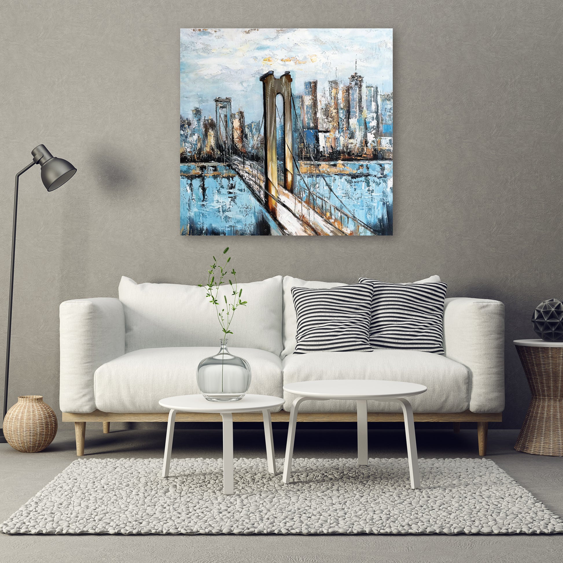 Step into the vibrant energy of the city with 'Urban Escape,' a captivating original cityscape that brings the dynamic spirit of metropolitan life into your home. This hand-painted treasure highlights a majestic bridge stretching over a reflective river, with a textured skyline that reaches for the clouds. Perfect for urban art enthusiasts and those looking to add a touch of cosmopolitan flair to their décor.