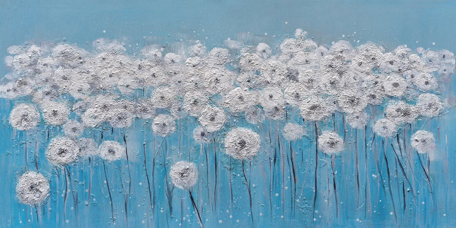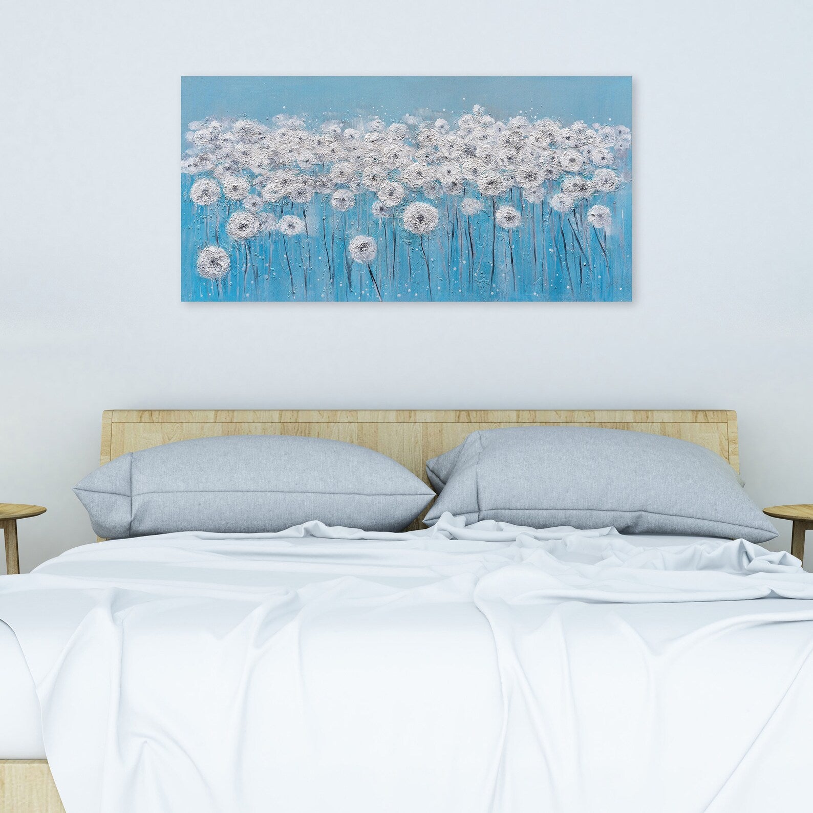 Hand-painted "Dandelion Flower Memory" painting original art, Canvas Wall art for living room, bedroom, office - Wrapped Canvas Painting