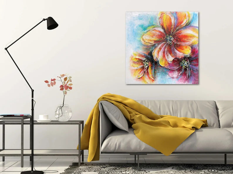 Hand-painted "Flower Memory" painting original Art, Canvas Wall art for living room, bedroom, office - Wrapped Canvas Painting