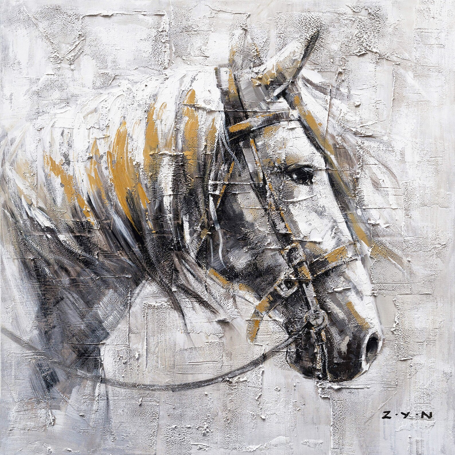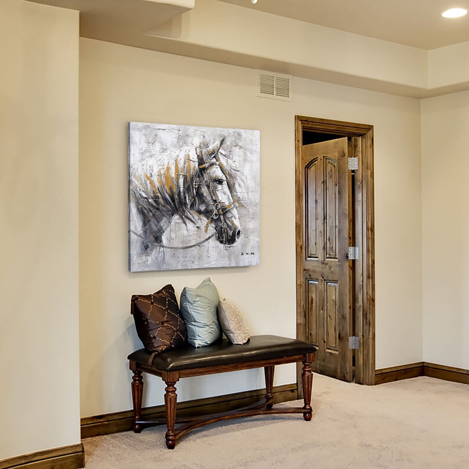 Hand Painted "Friendly horse" Oil painting on canvas original Art, Wall art for living room, bedroom, office - Wrapped Canvas Painting