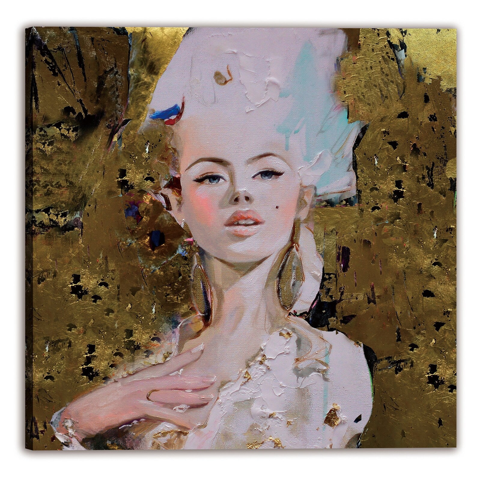 Hand-painted "Girl in golden background" custom painting on canvas Art, Canvas Wall art - Wrapped Canvas Painting