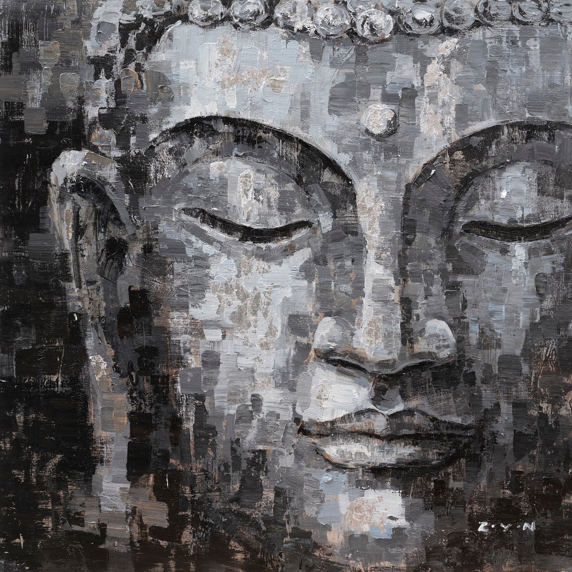 Hand-painted "Golden Buddha on black background" Oil painting on canvas original, Canvas Wall art - Wrapped Canvas Painting