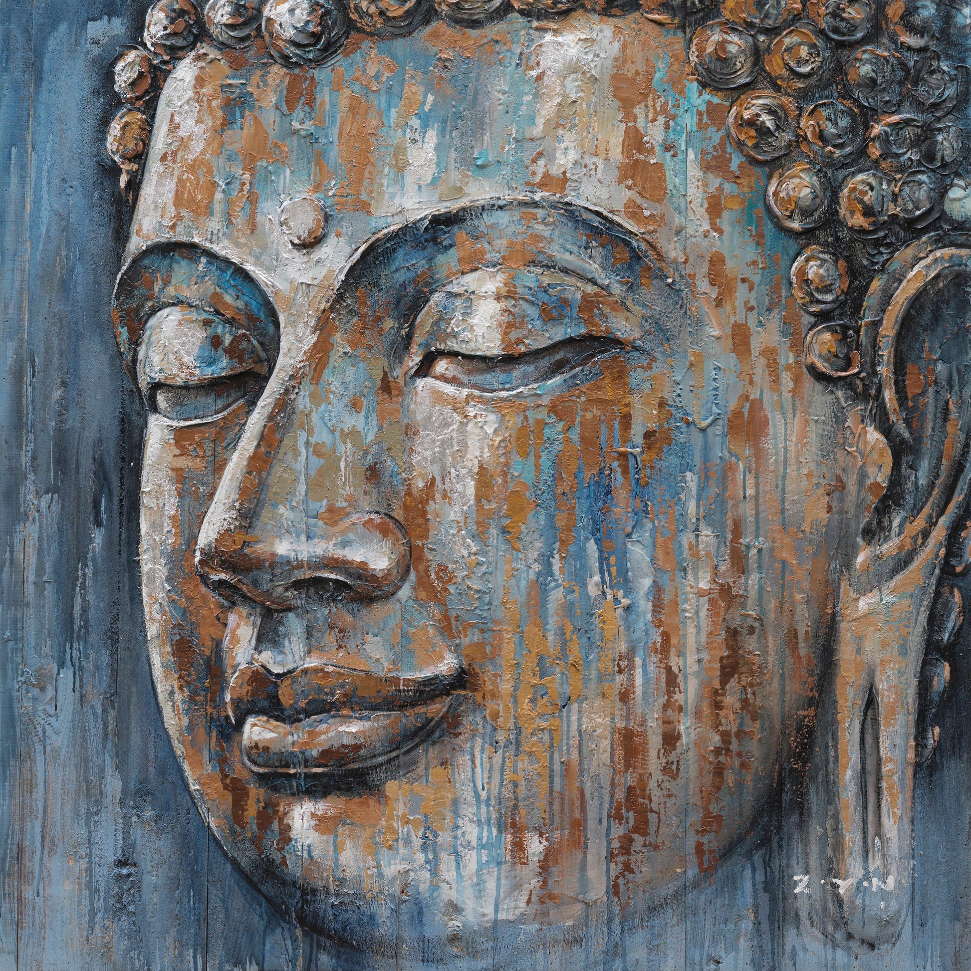 Hand-painted "Golden Buddha on blue background" Oil painting on canvas original, Canvas Wall art - Wrapped Canvas Painting
