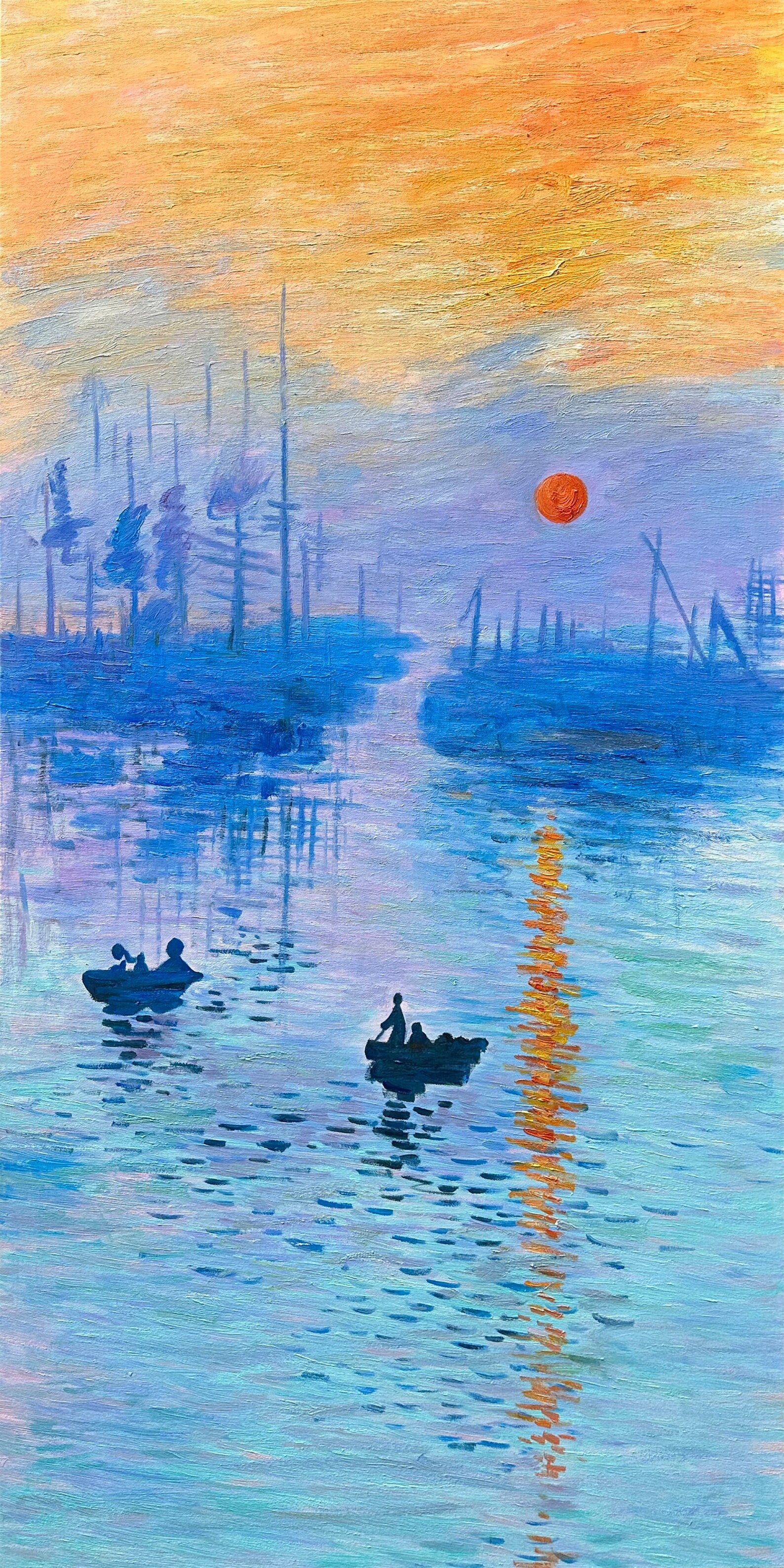 Celebrate the enduring legacy of the great artist Monet with our artistic oil painting inspired by his renowned masterpiece, "Sunrise." This vertical composition captures the essence of impressionist light and shadow, showcasing the timeless beauty of the original work while infusing it with a contemporary vitality.