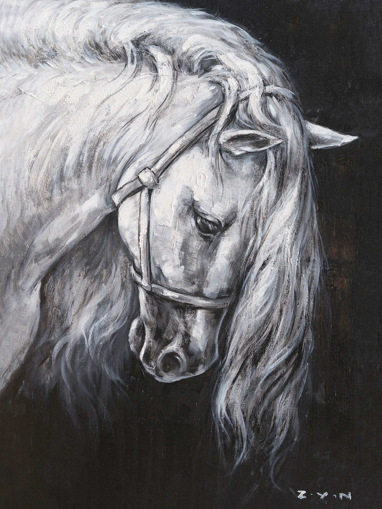 Hand Painted "Long-maned horse" original Modern Abstract Art, Wall art for living room, bedroom, office - Wrapped Canvas Painting