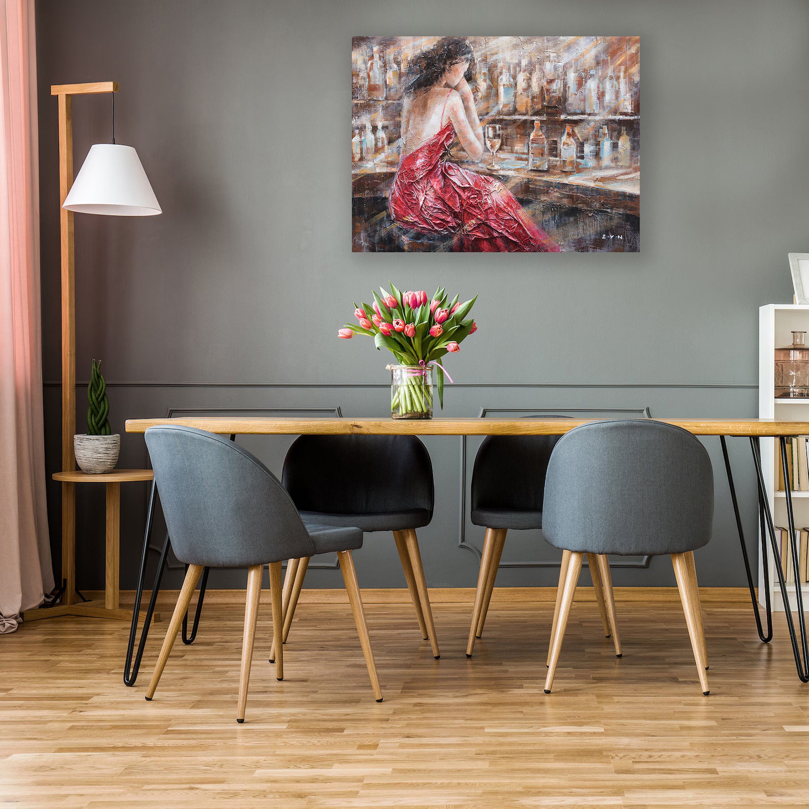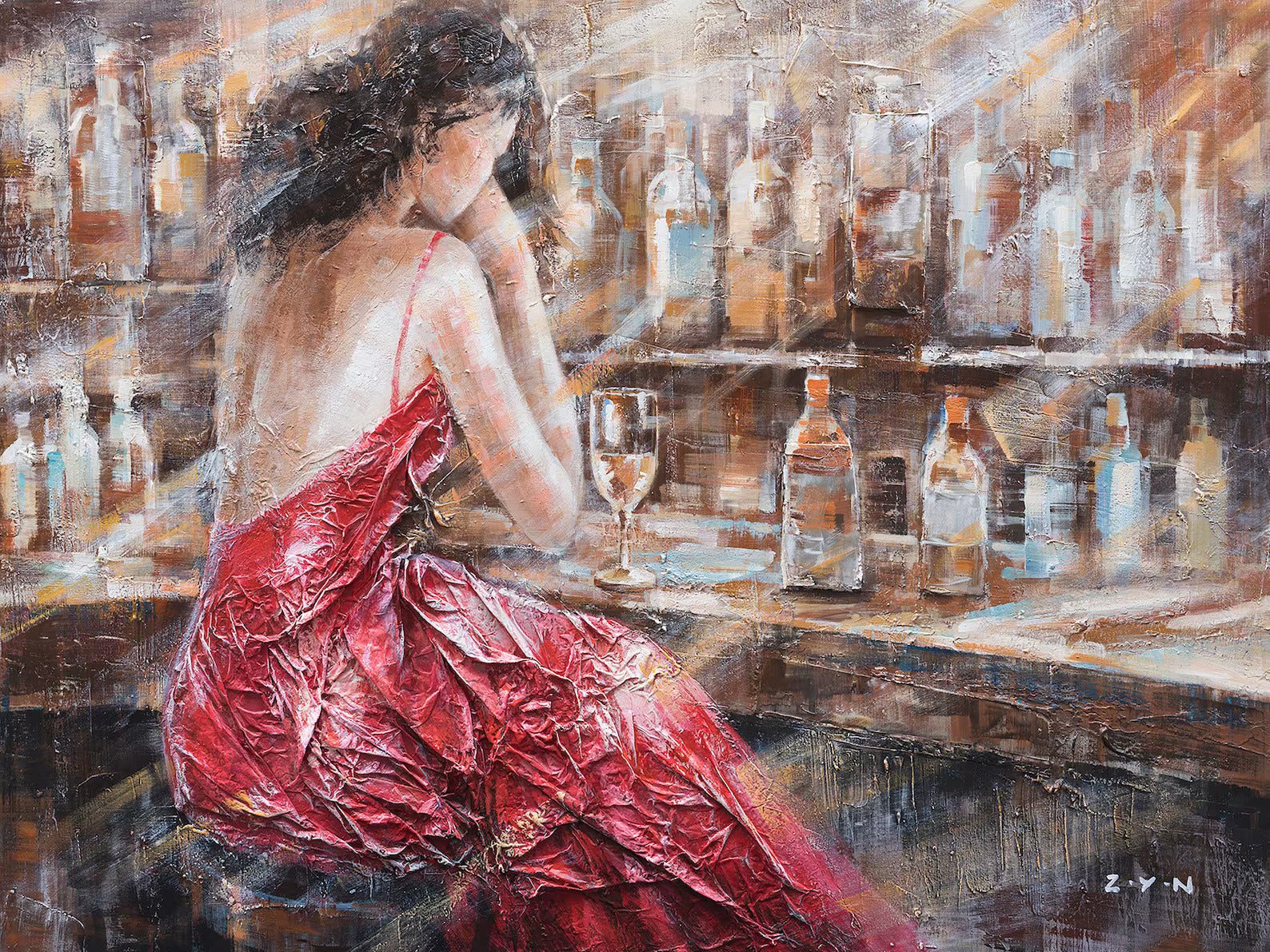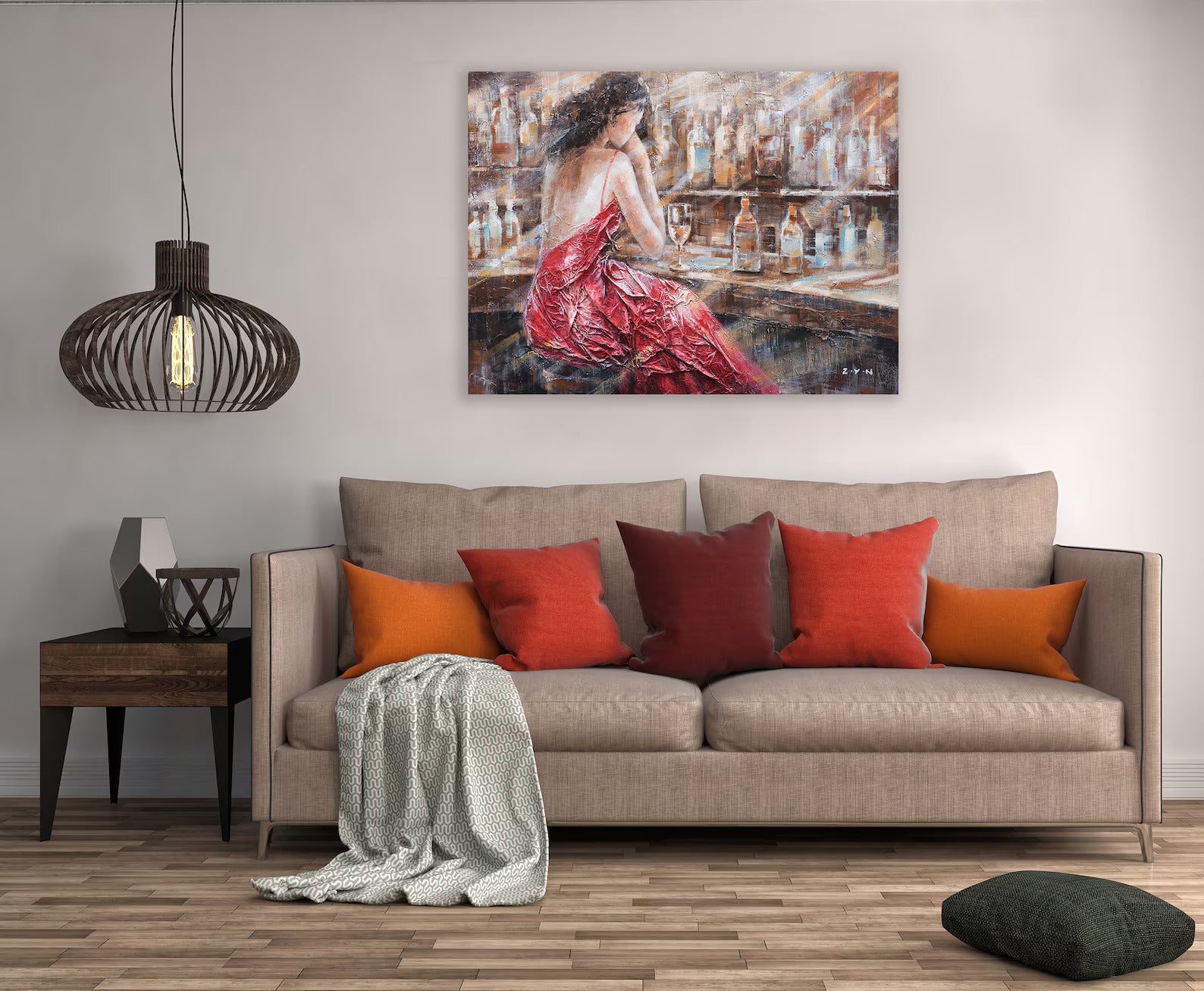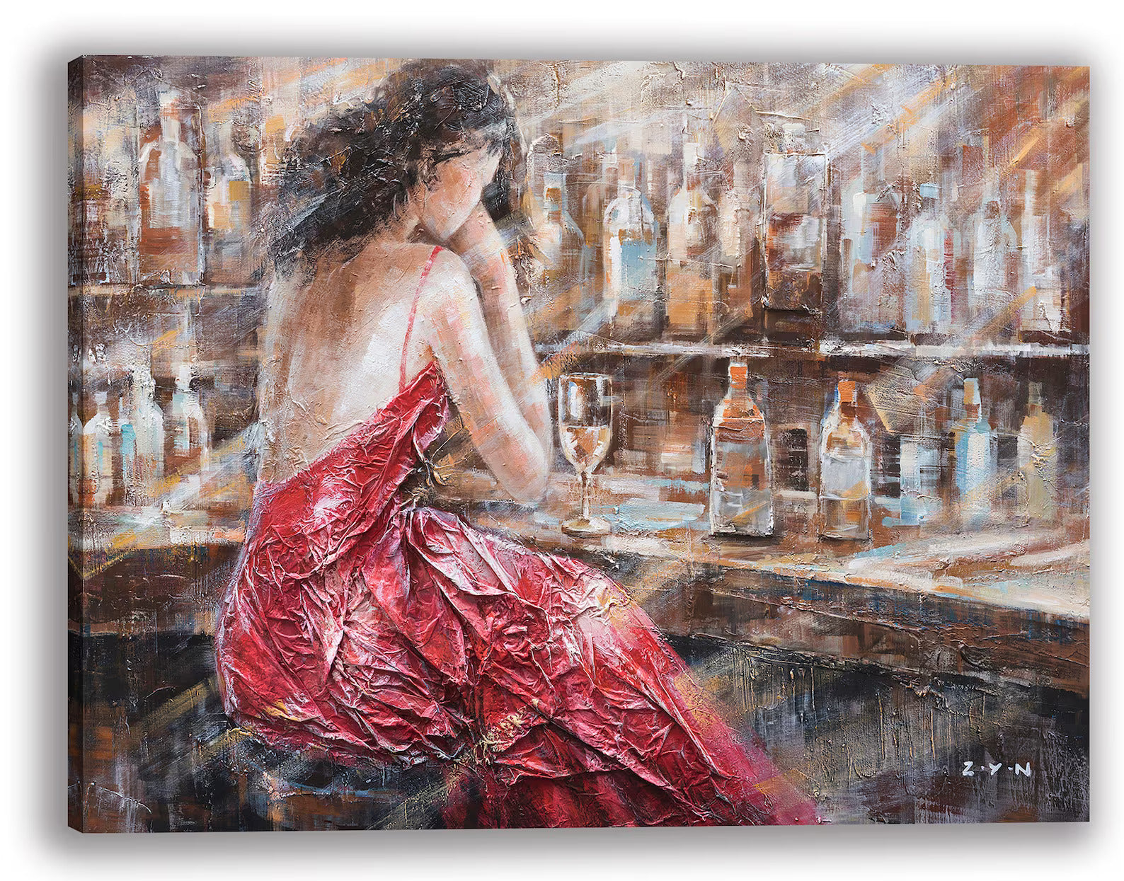 Hand-Painted Original Oil Painting: 'Lady at the Bar Counter' - Canvas Wall Art for Home Decor