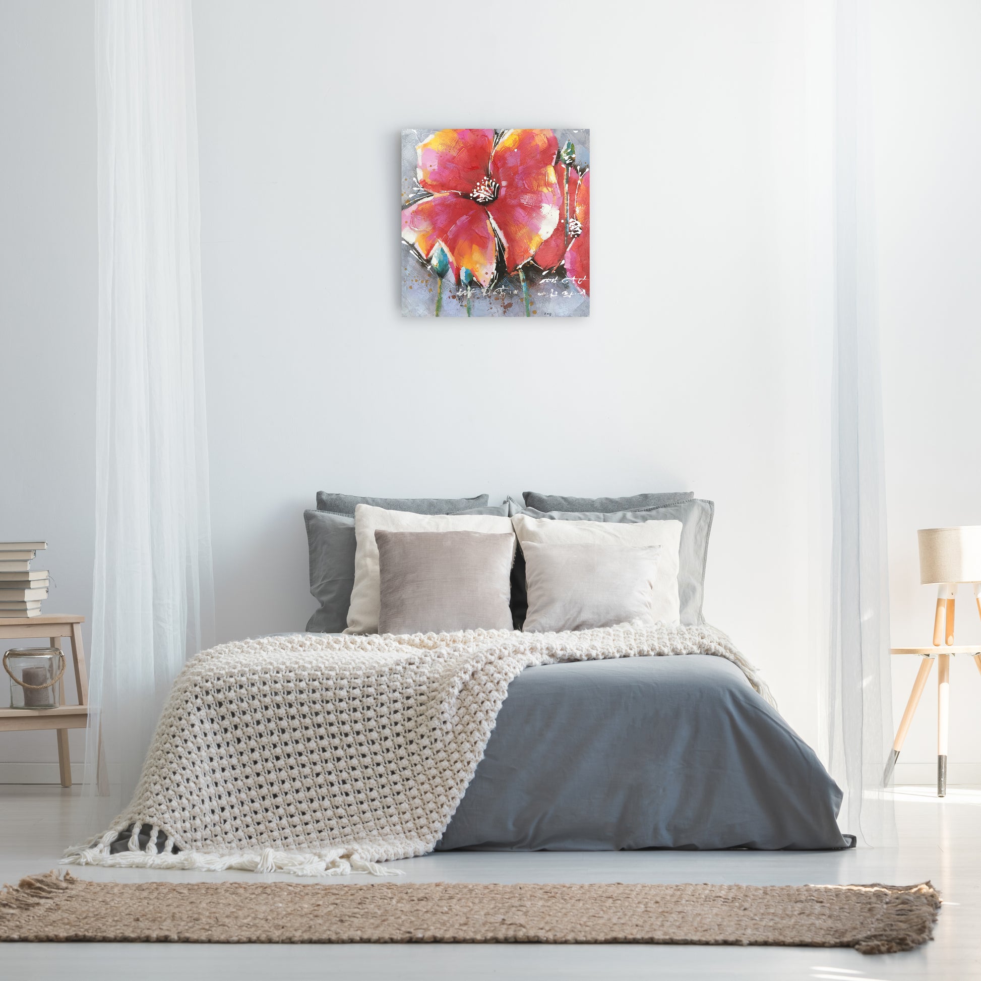 "Red Lotus Flowers" Hand Painted on Wrapped Canvas