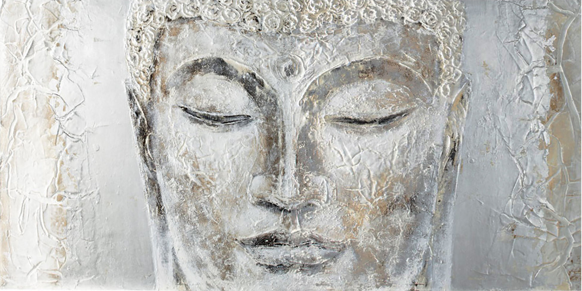 Hand Painted "White Buddha" Oil on Canvas Original, Canvas Wall Art for Living Room, Bedroom, Office, Bar - Wrapped Canvas Art