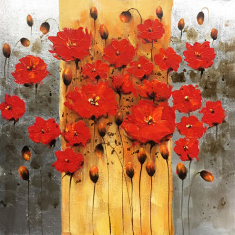 "Abstract Red Flowers" Hand Painted on Wrapped Canvas