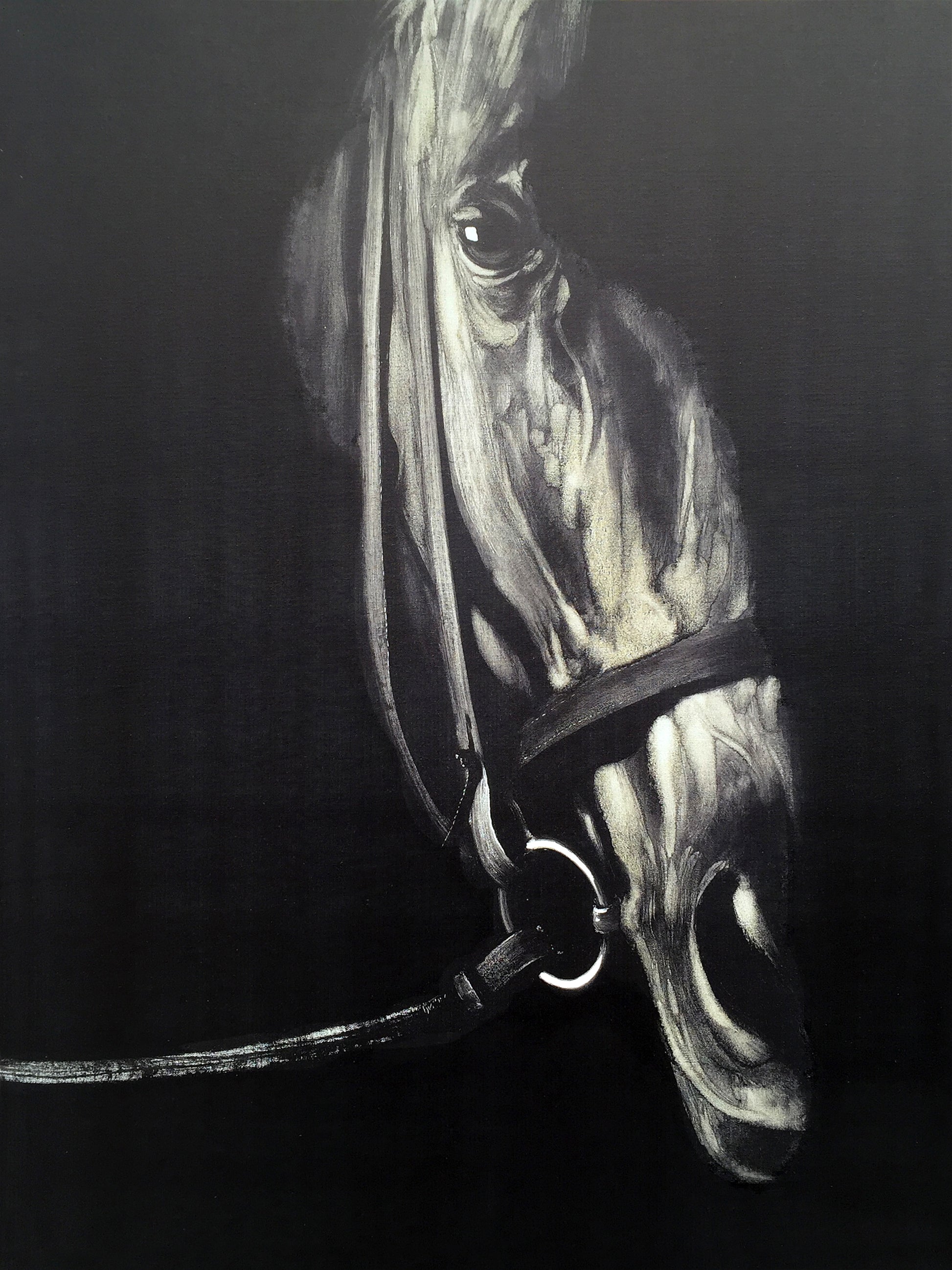 'Horse in the Dark IV' Oil Painting Print on Wrapped Canvas