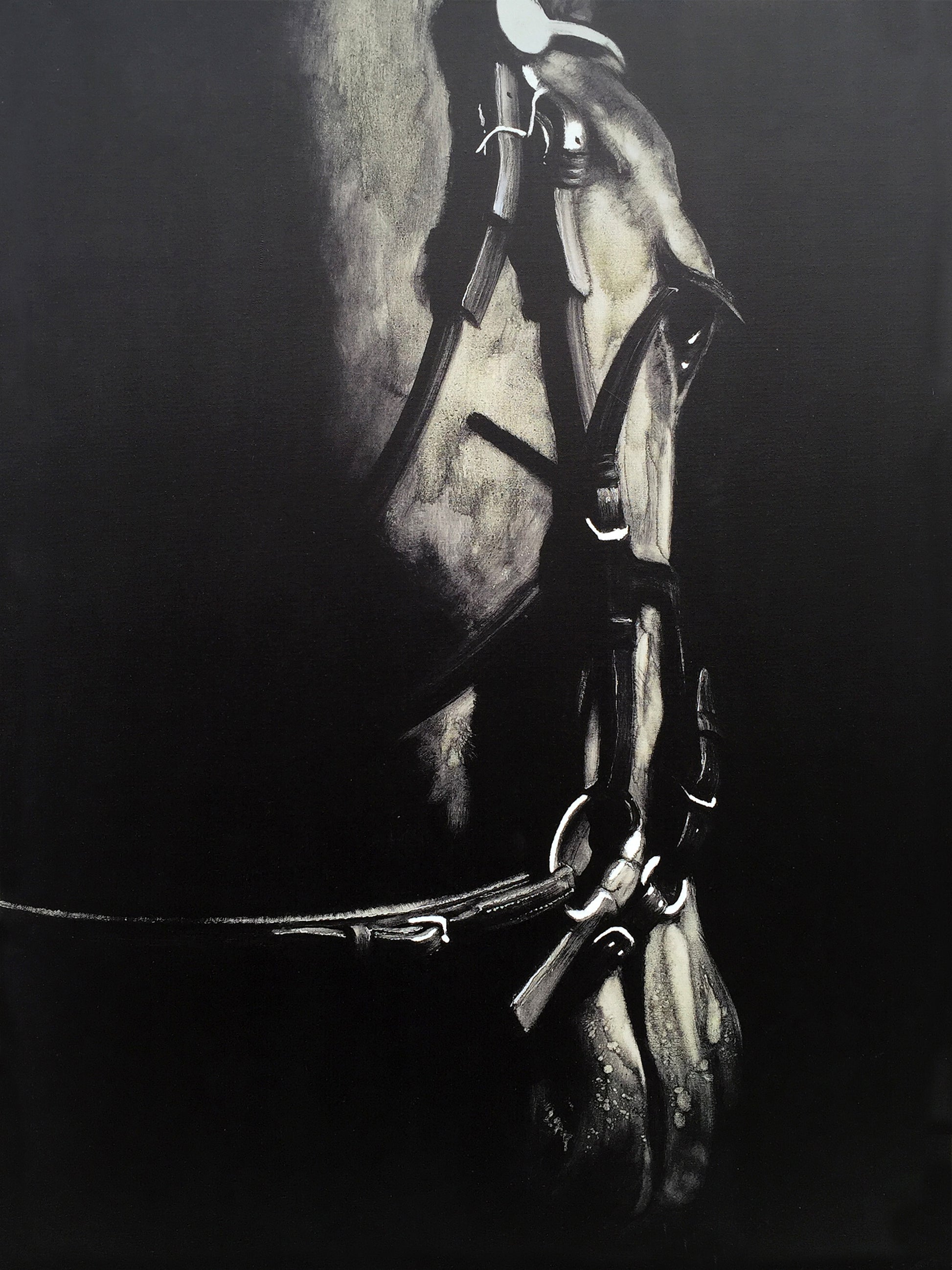 'Horse in the Dark V' Oil Painting on Wrapped Canvas