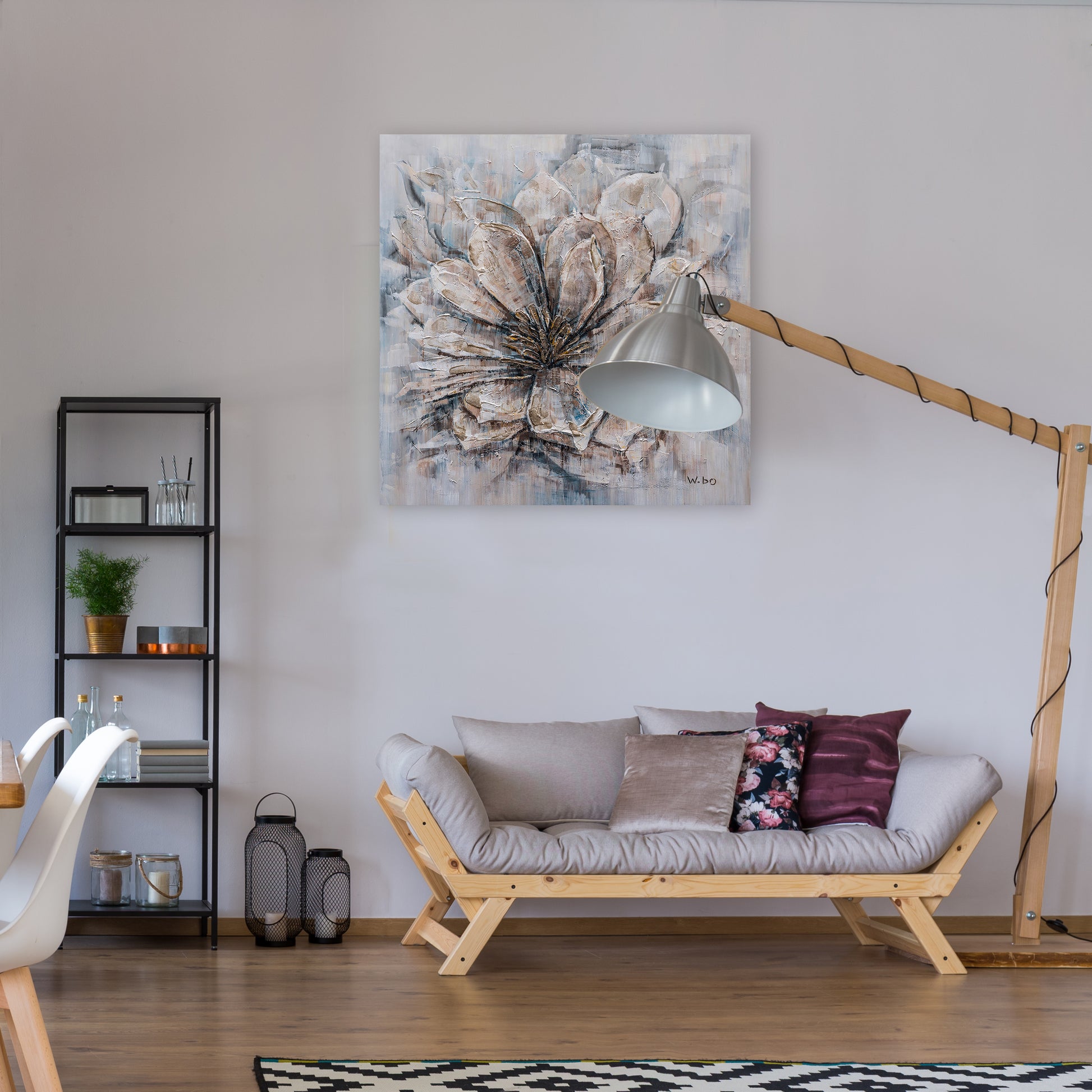 This beautiful piece of hand-painted contemporary artwork was made using oil paints on canvas. Perfect for your living room, dining room or even your office space.