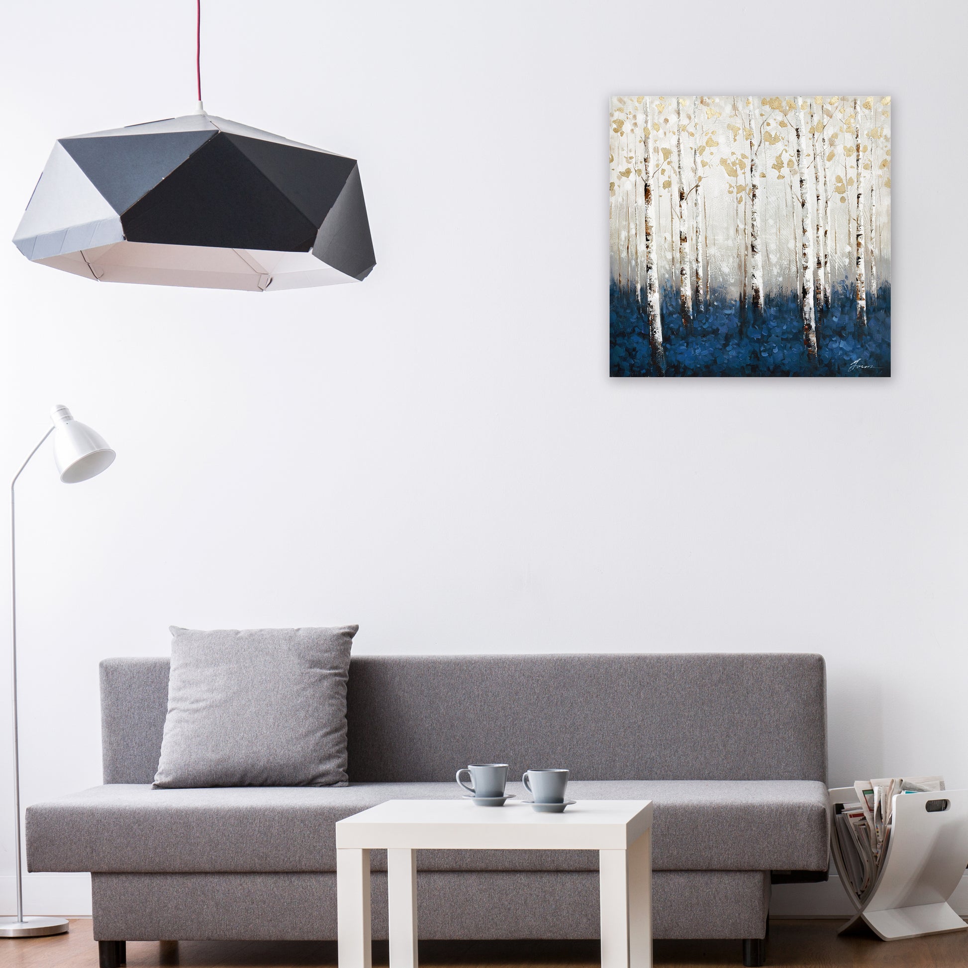 Empty entryway wall? Some spare space in the master suite? A boring bathroom? Wall art instantly turns any blank area into an eye-catching display, all while lending gallery-worthy appeal to your abode. Just take a look at this piece for example: it features an abstract oil painting, showcasing blue forest. On gallery-wrapped canvas, and arrives with wall hook for easy mounting.