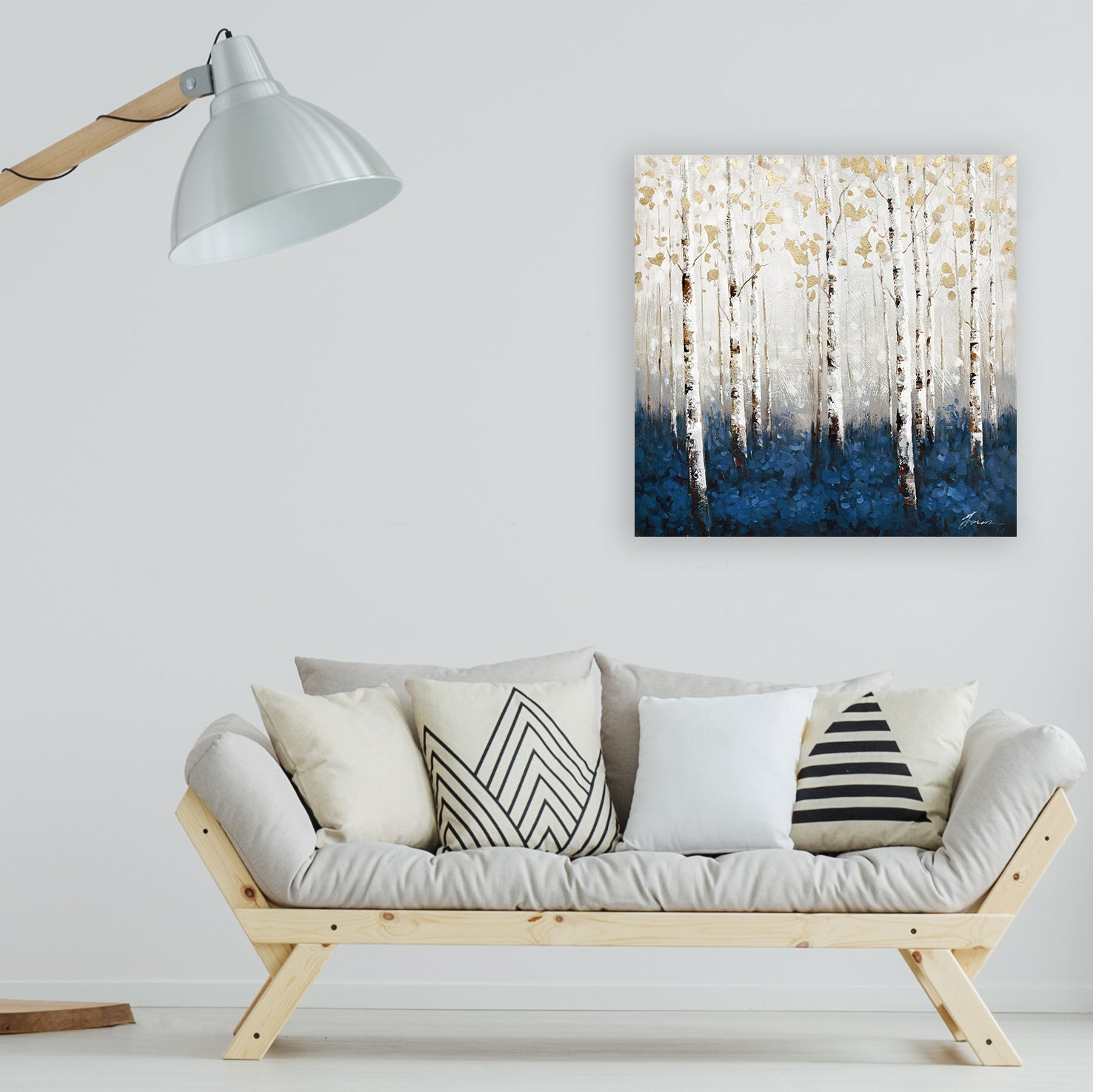 Navy blue in abstract forest - Oil Painting on Wrapped Canvas, Wall art. wall art, canvas artwork for living room, bedroom, office