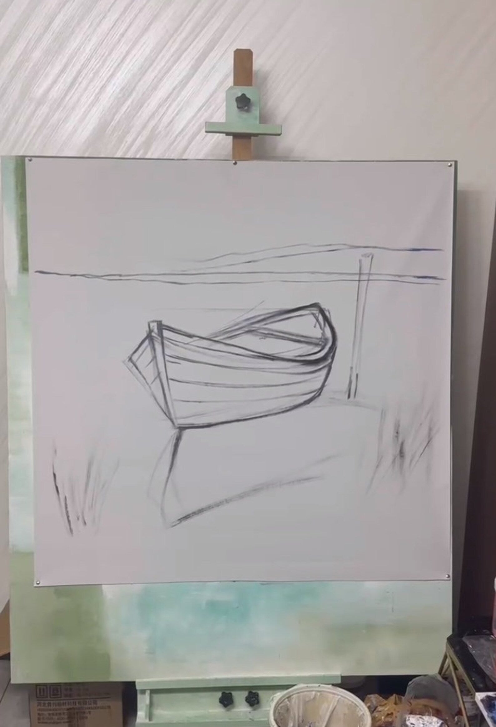 New Original artwork "Blue boat by the sea" hand-painted painting for Home decor - latest creation