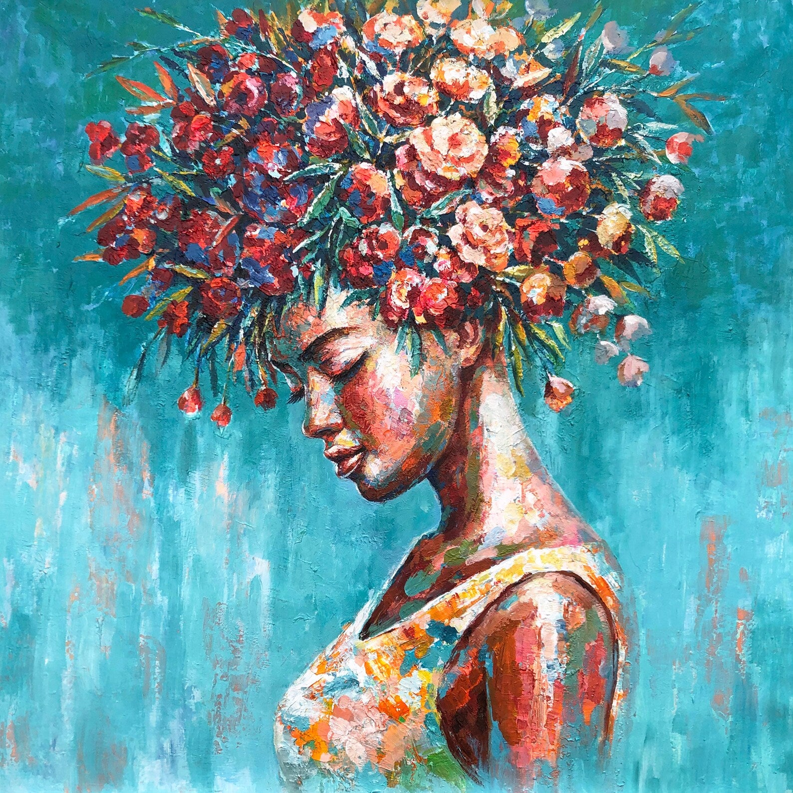 Oil Painting Prints "Flower Girl" Fine art,Canvas Artwork,Wall art for living room,bedroom,Office - Wrapped Canvas Painting