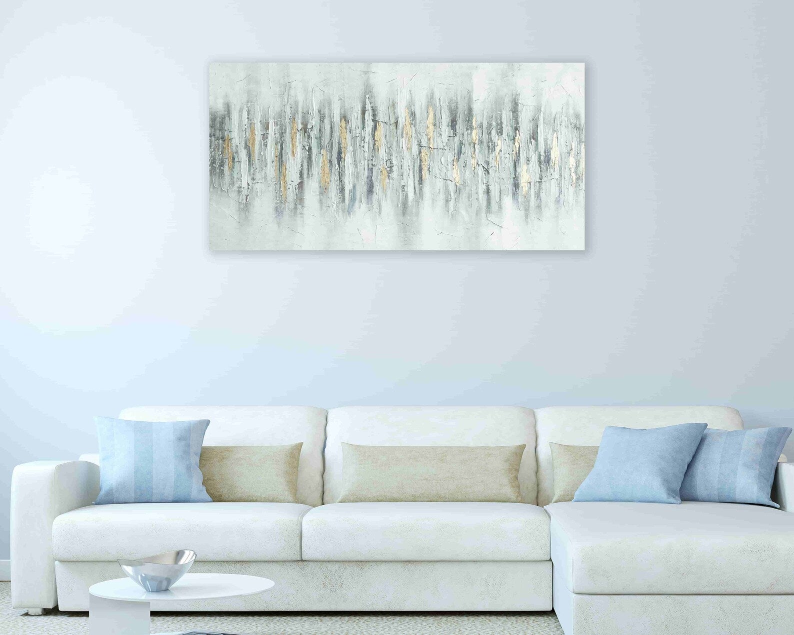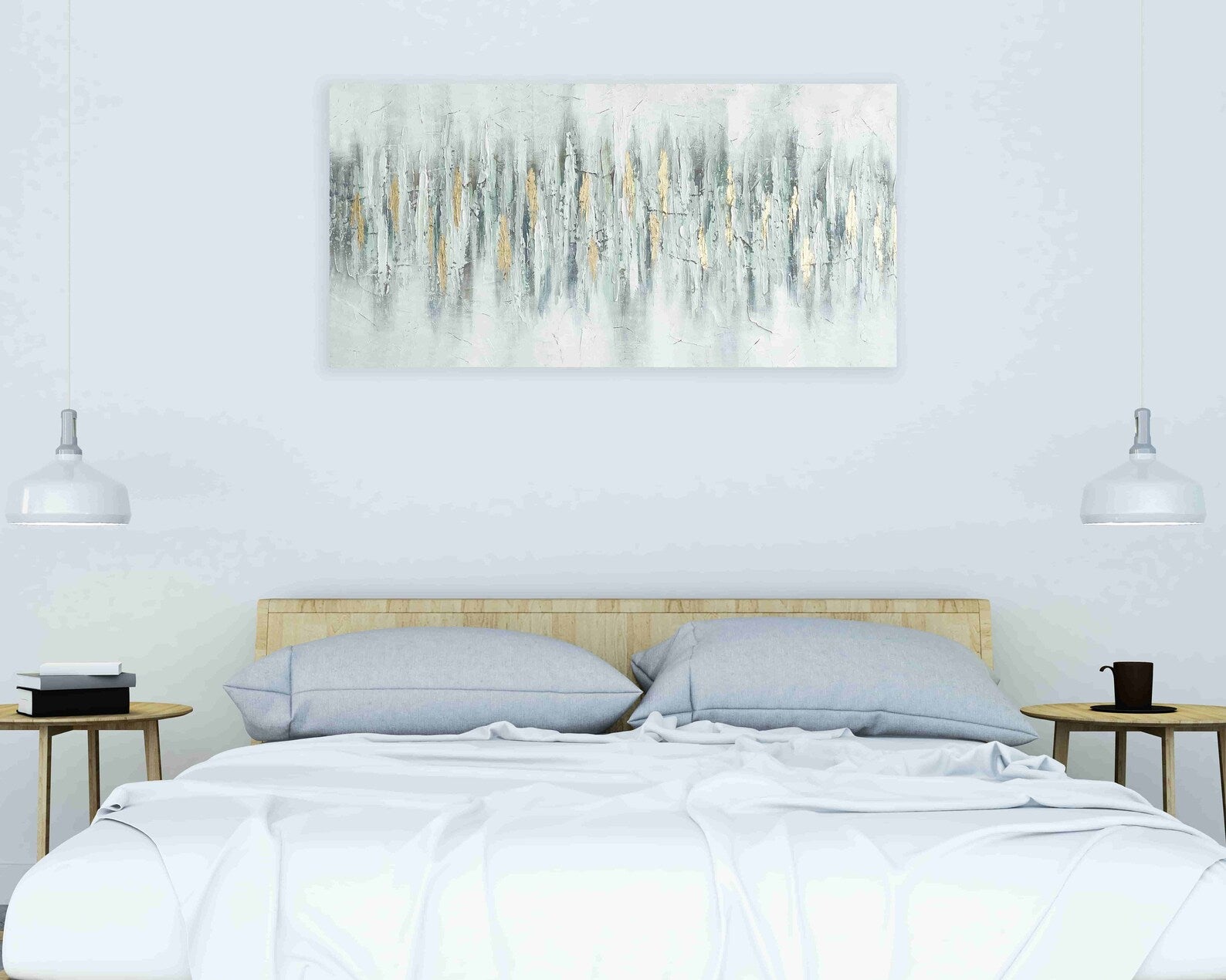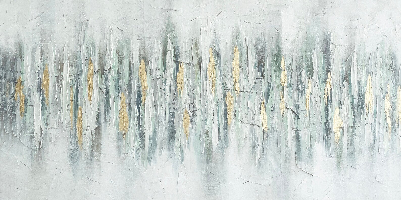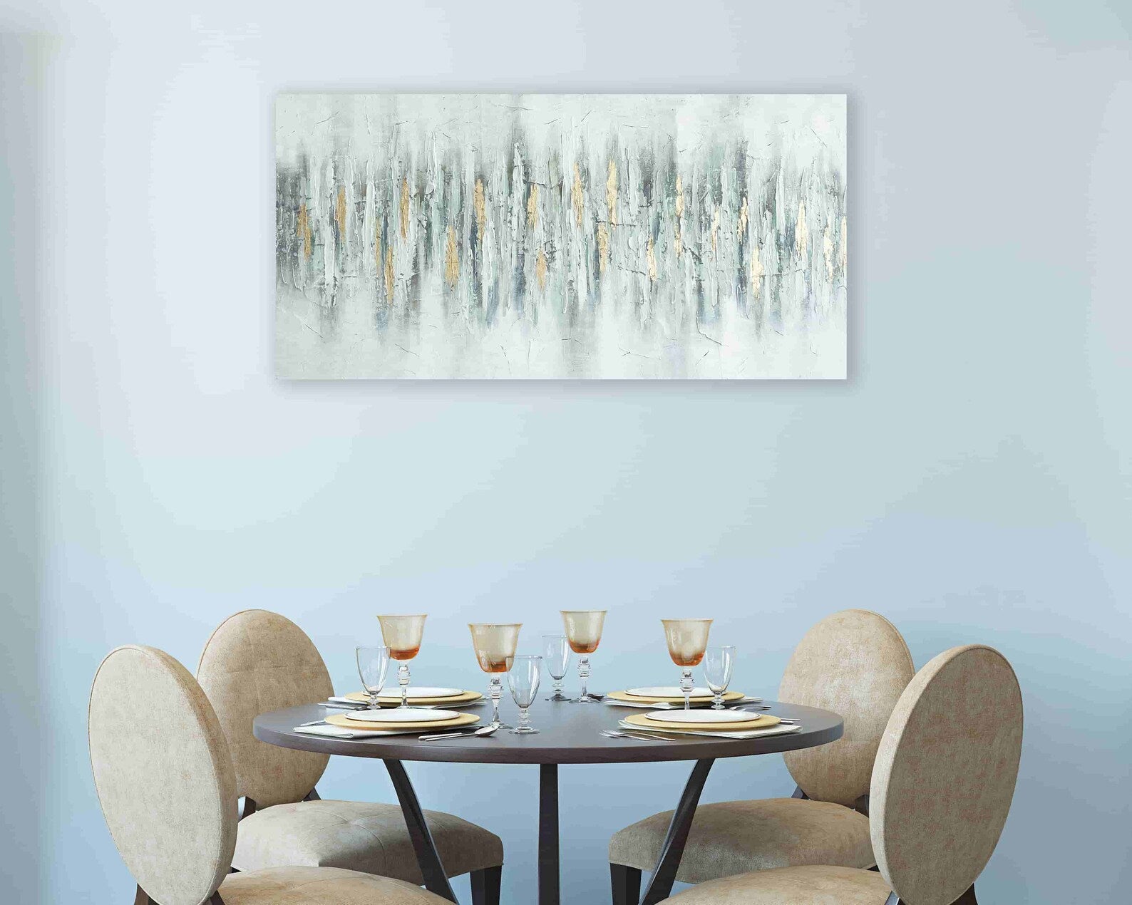 Using a palette of aqua, white, gray, and occasional hints of gold, "Dreamscape Symphony" is a visual masterpiece that will transform any space. The artist's brushstrokes are bold and expressive, crafted with a knife-painting technique that adds depth and dimension to the artwork. Set against a subtle light gray background, the vertical brushstrokes create a sense of movement and intrigue.