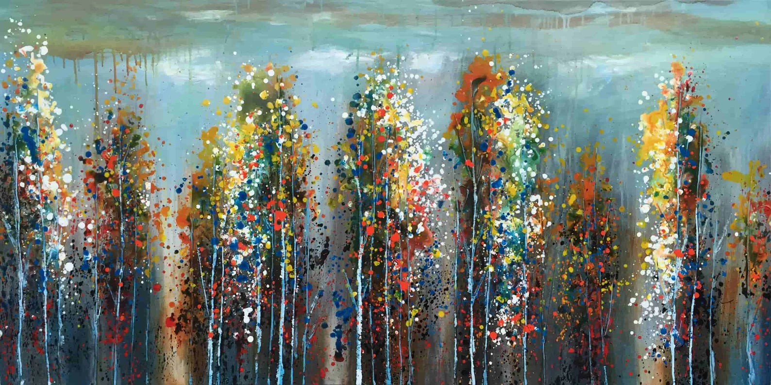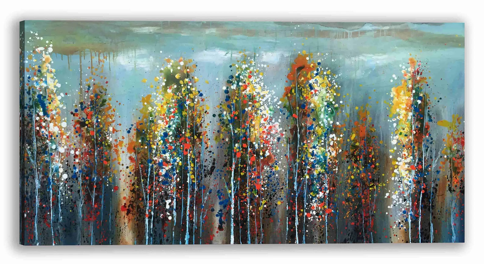Original abstract oil painting "Autumn Forest in the Distance" hand-painted on canvas wrapped for Home Decor