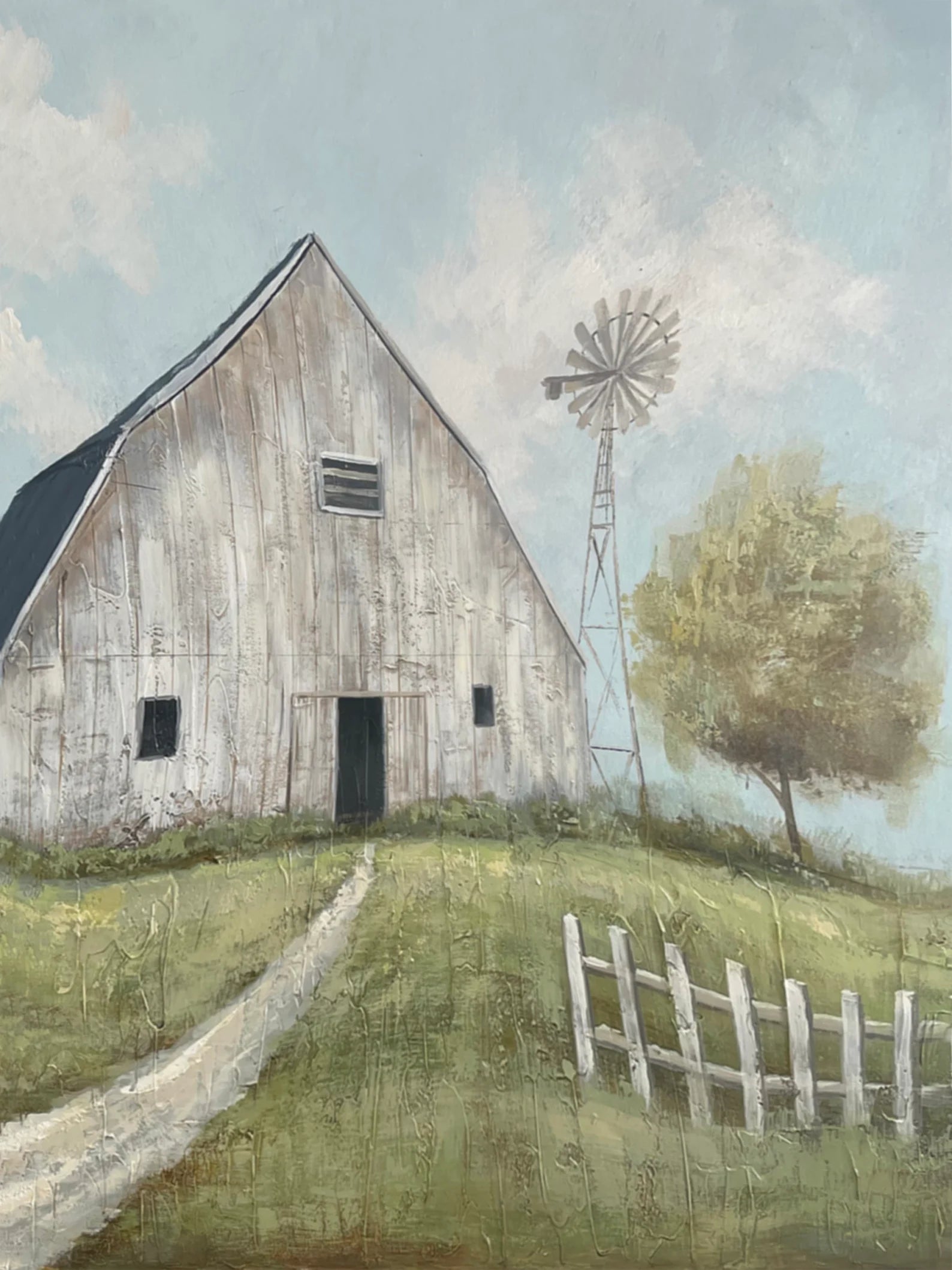 Journey through the evocative landscapes of American history with "Barn in Memory," an original masterpiece of impressionistic art. This handcrafted painting captures the essence of a bygone era, inviting you to explore the rustic charm of the countryside.