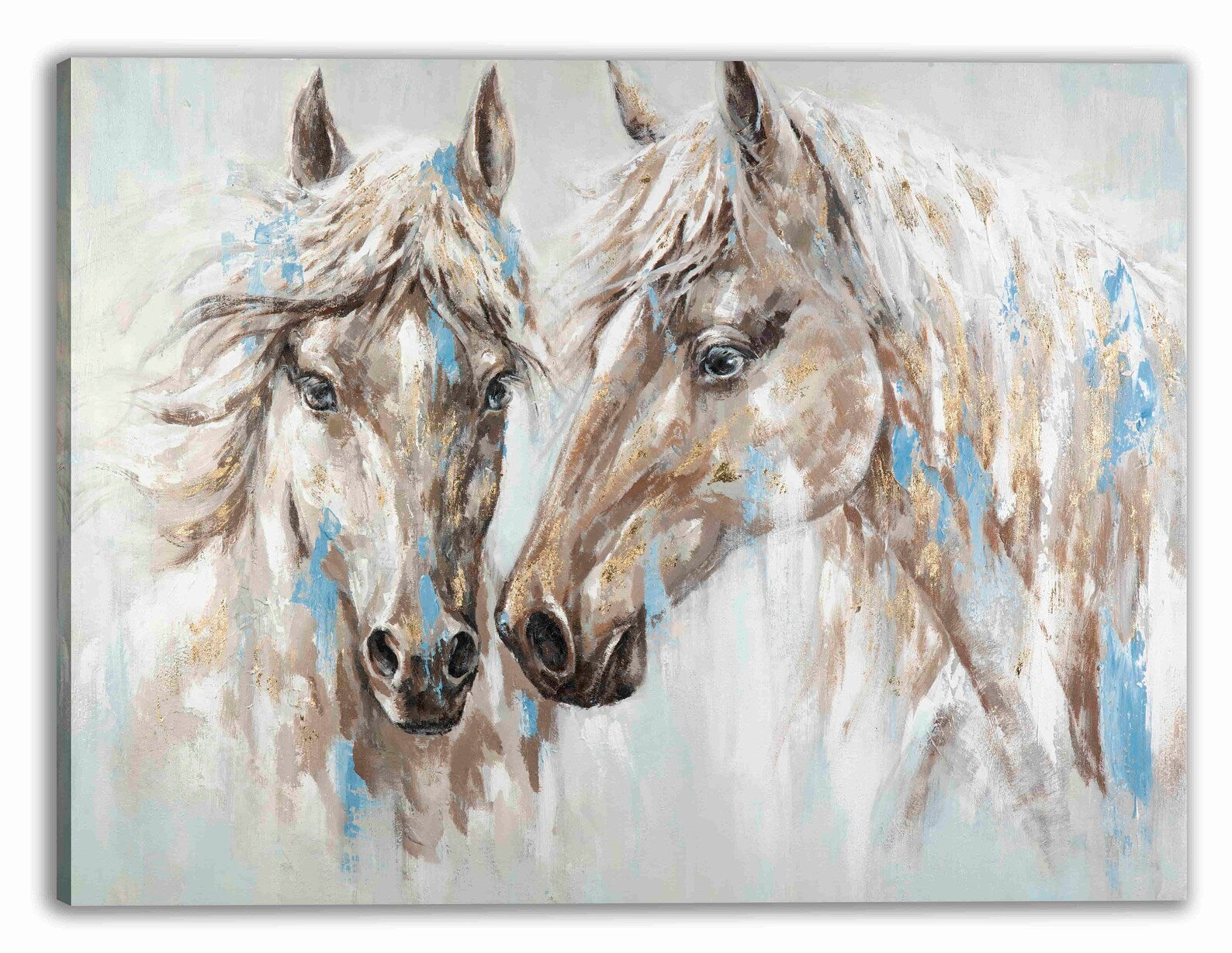 Transform your space with the mesmerizing allure of our original hand-painted masterpiece, "Couple Horse." Crafted with meticulous attention to detail, this artwork exudes elegance, grace, and a touch of golden charm.