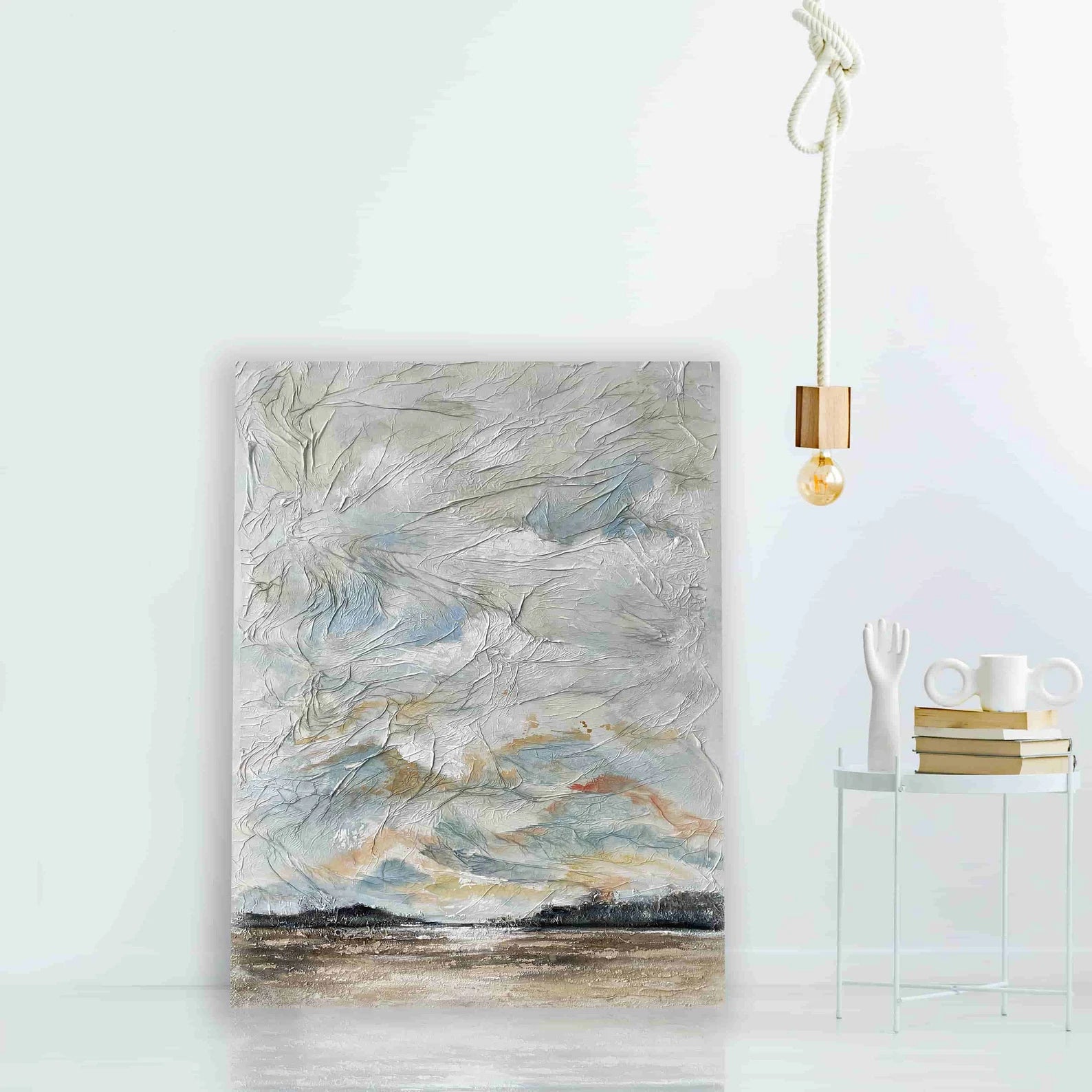 Original art - Embrace the Infinite with "Autumn Clouds" handmade painting wrapped canvas for living room bedroom home decor
