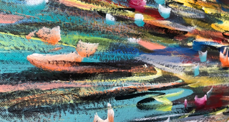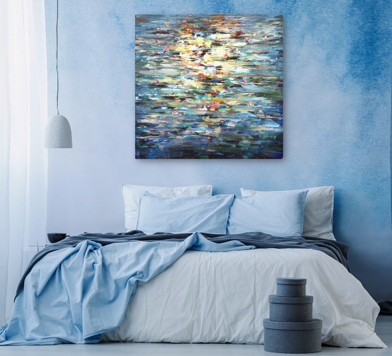 empty wall in the foyer? Some extra room in the master bedroom? A dull restroom? Wall art instantly transforms any empty space into an eye-catching exhibit and gives your home a look worthy of a gallery. Just look at this piece, for instance. It has oil paintings that are abstract and exhibit a vibrant reflection in the water. Oil painting on gallery-wrapped canvas that comes with two wall hooks for simple mounting and may be hung either horizontally or vertically.hand-painted abstract artwork for wallsOnline and actual product colors could differ. Artwork is delivered ready to hang.Now accepting custom paintings. Please send me a note if you want to customize alternative sizes or images. The artist will produce works of art based on your suggestions.