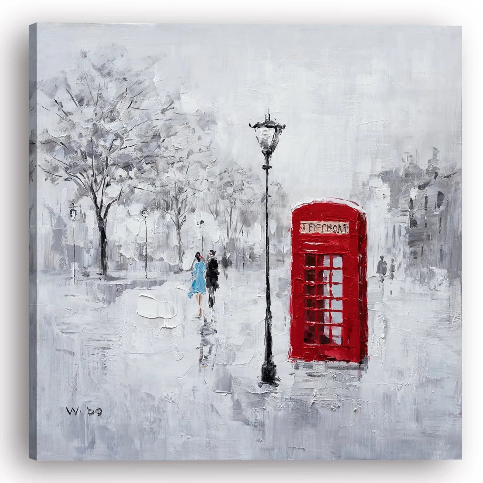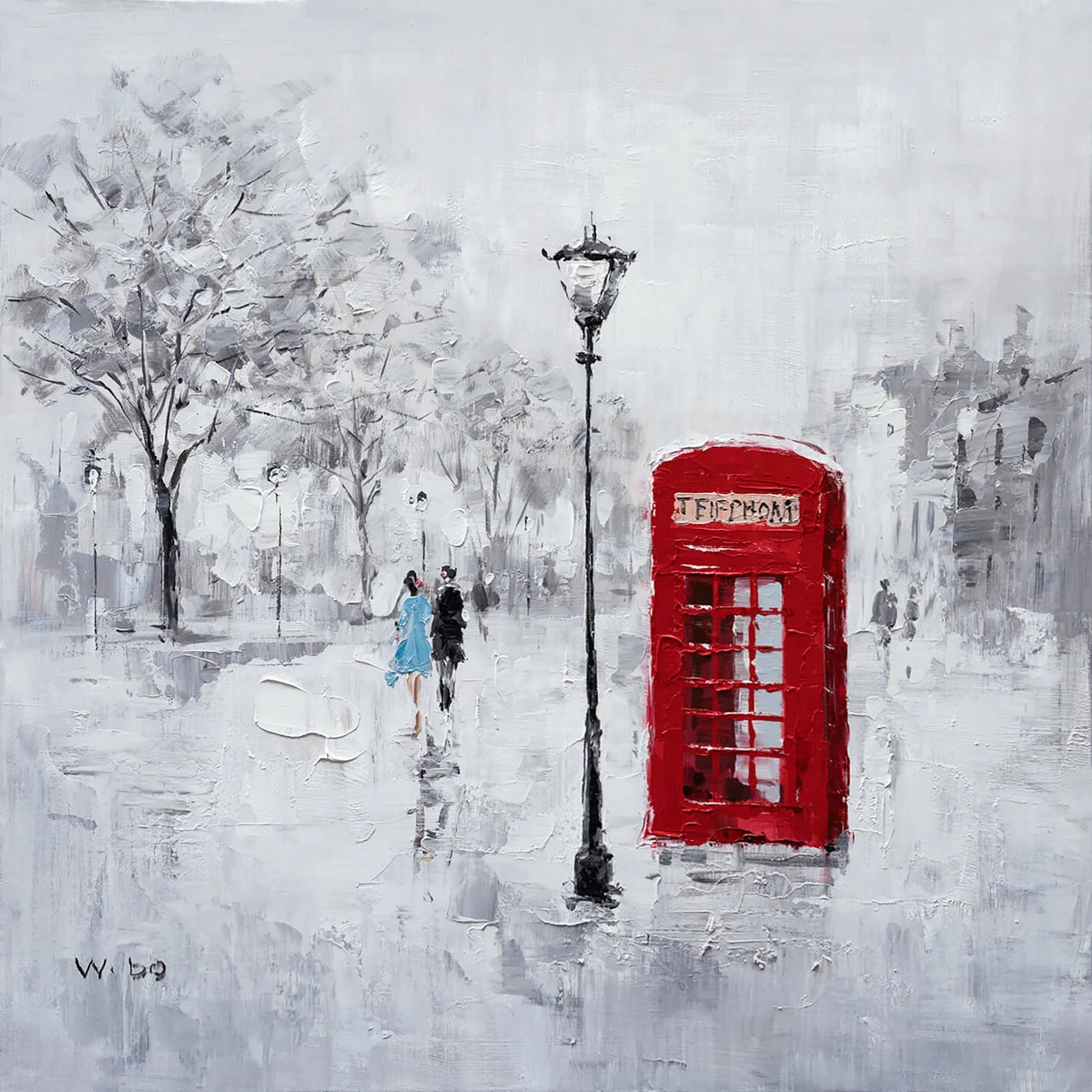 Whether you're looking for a stunning centerpiece for your living room or a unique addition to your office, our ""Crimson Connection - Telephone Booth"" oil painting is the perfect choice. Its timeless beauty and expert craftsmanship make it a true work of art that is sure to inspire and captivate. So why wait? Order now and experience the beauty and elegance of this stunning piece for years to come