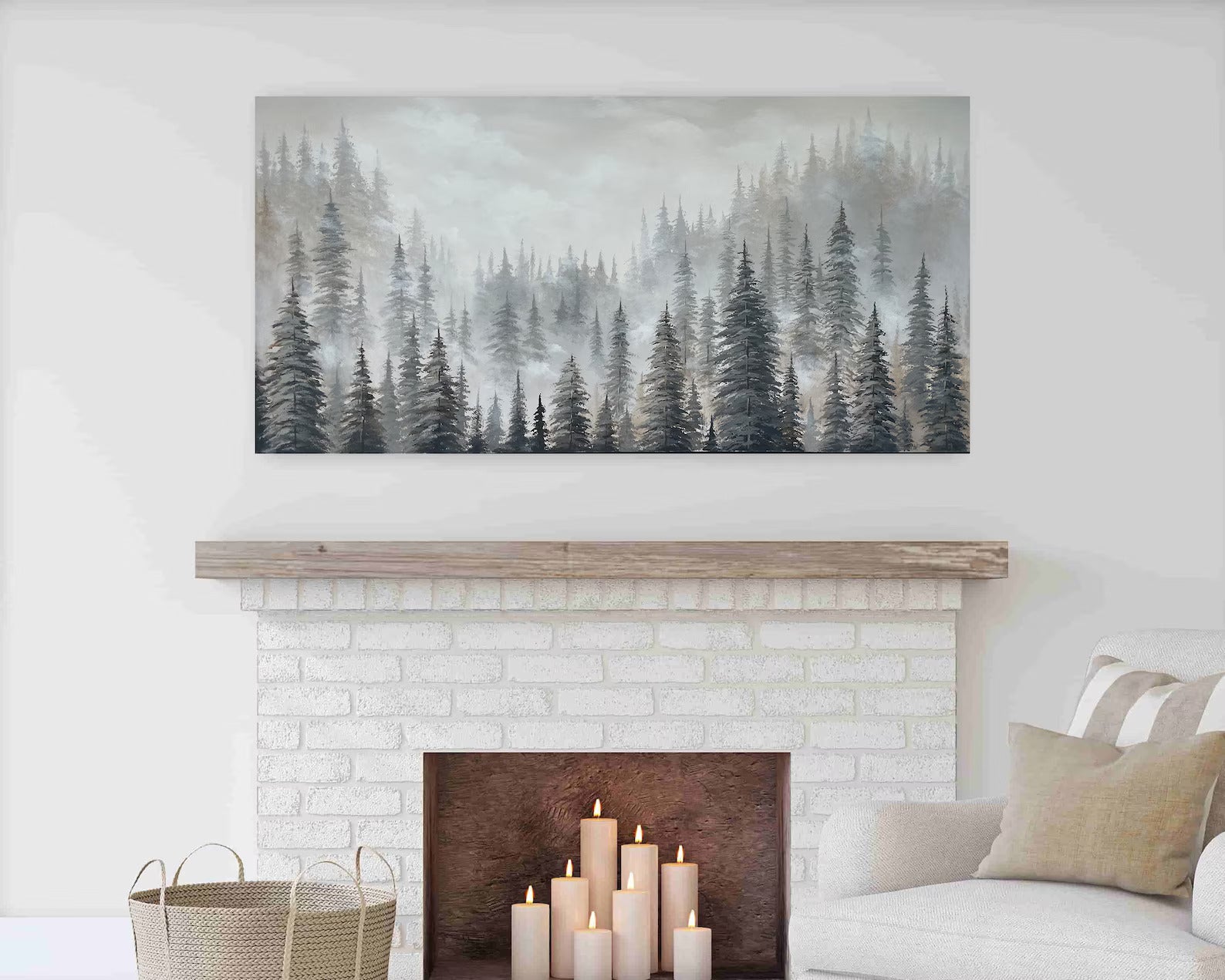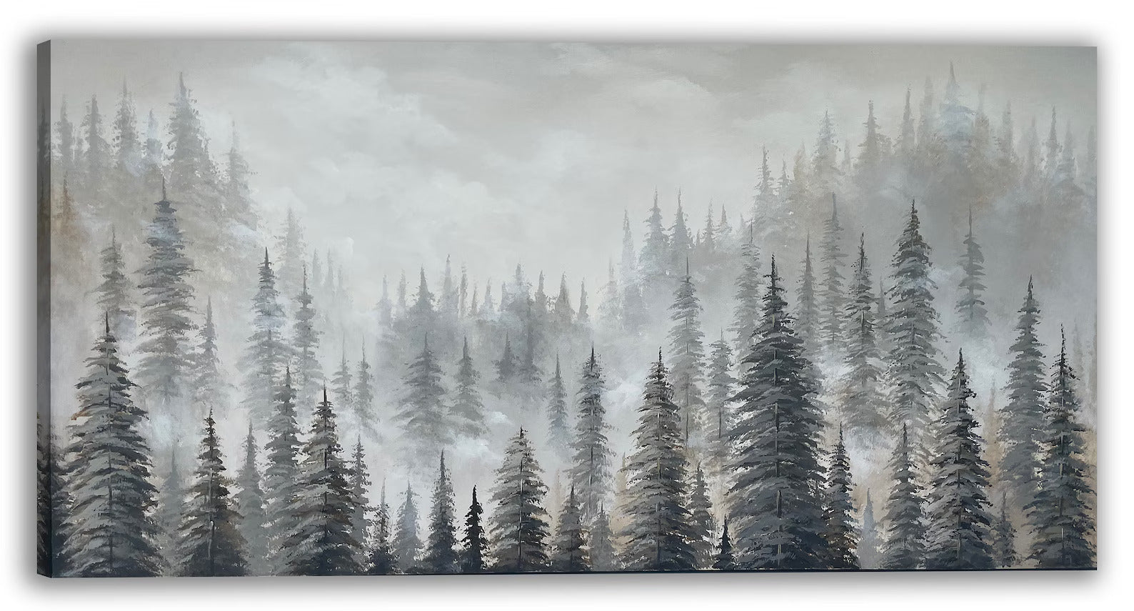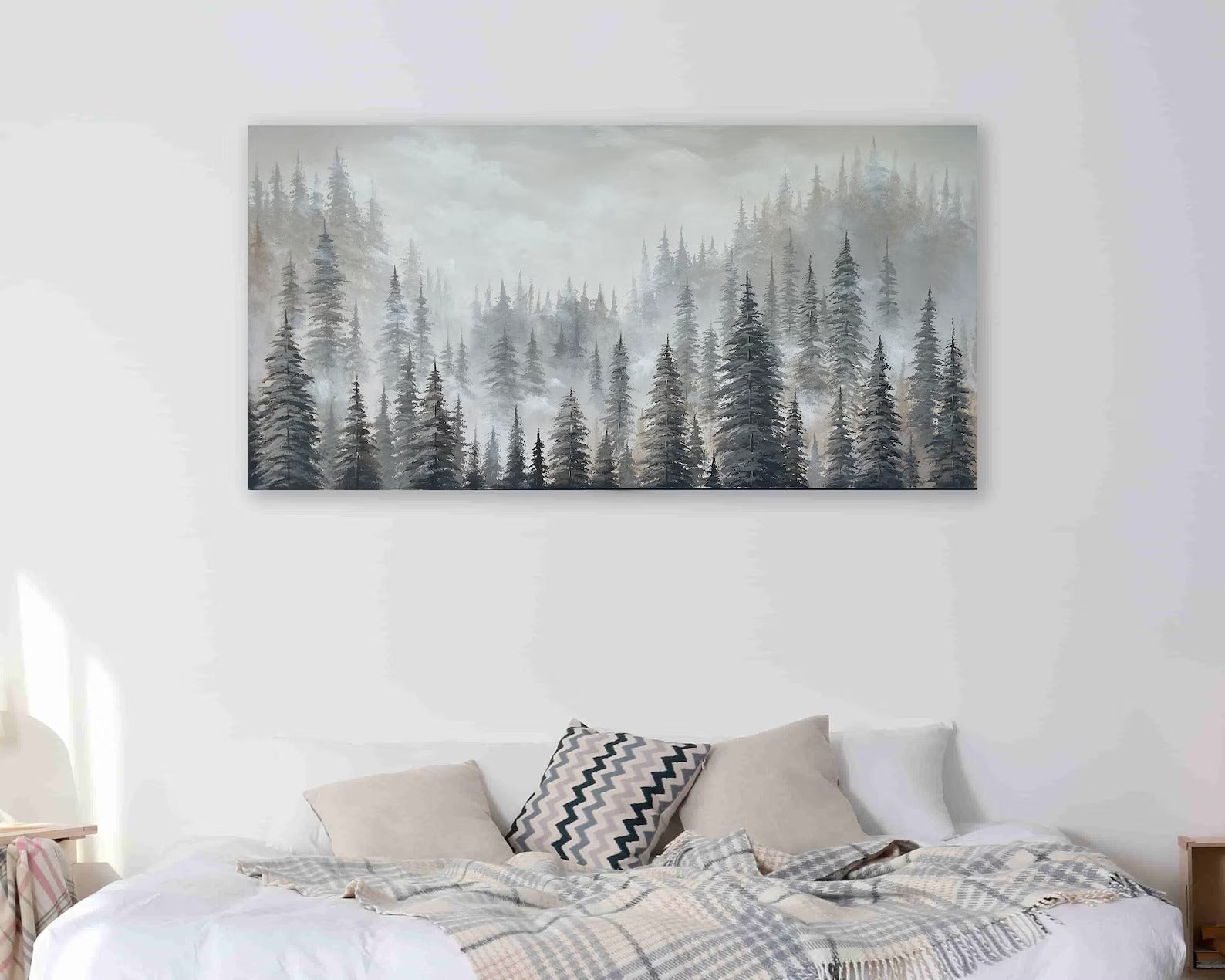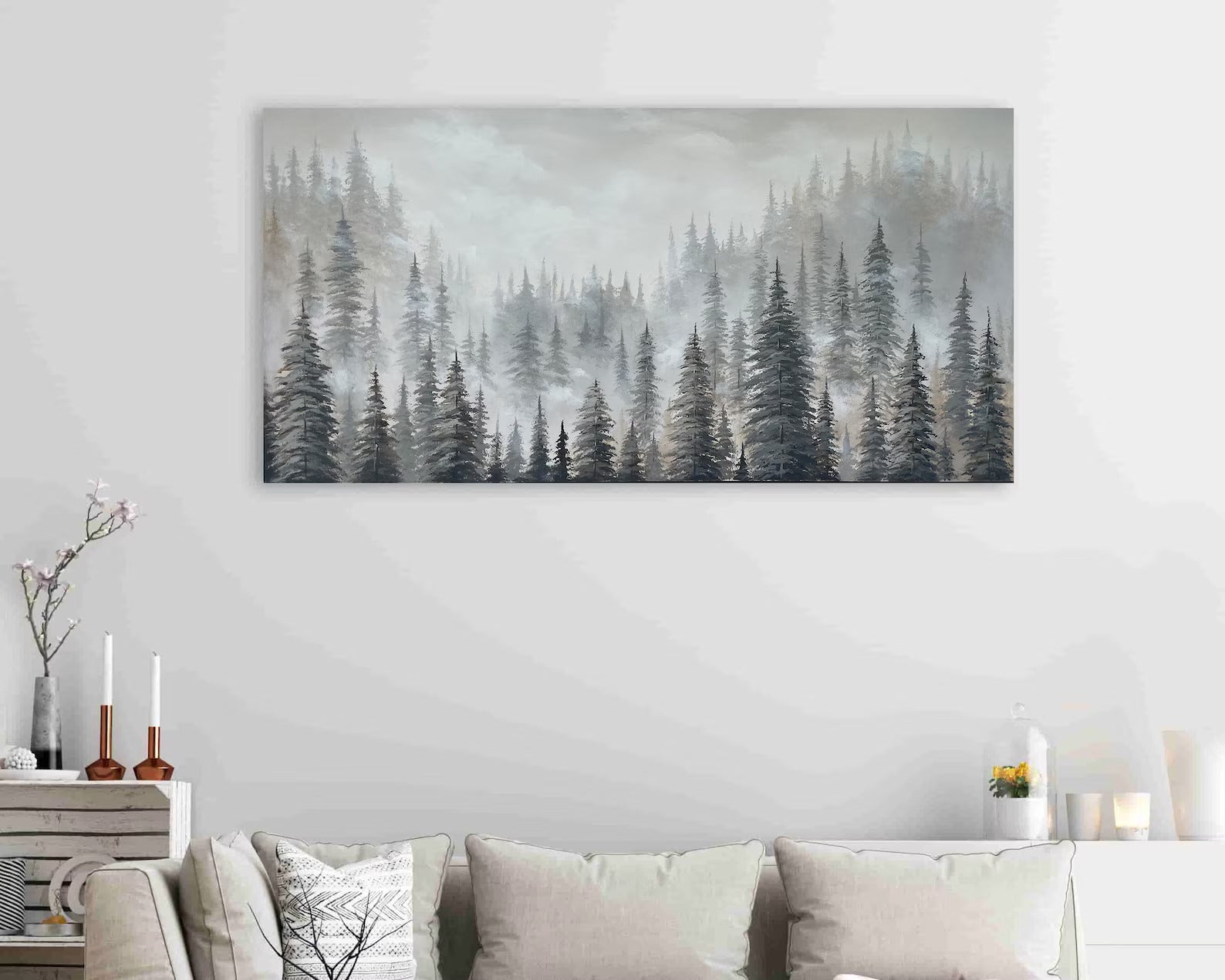 Original Painting art "Enveloped in Tranquility: Pine Forest in Autumn Mist" hand-painted canvas wrapped for living room bedroom home decor