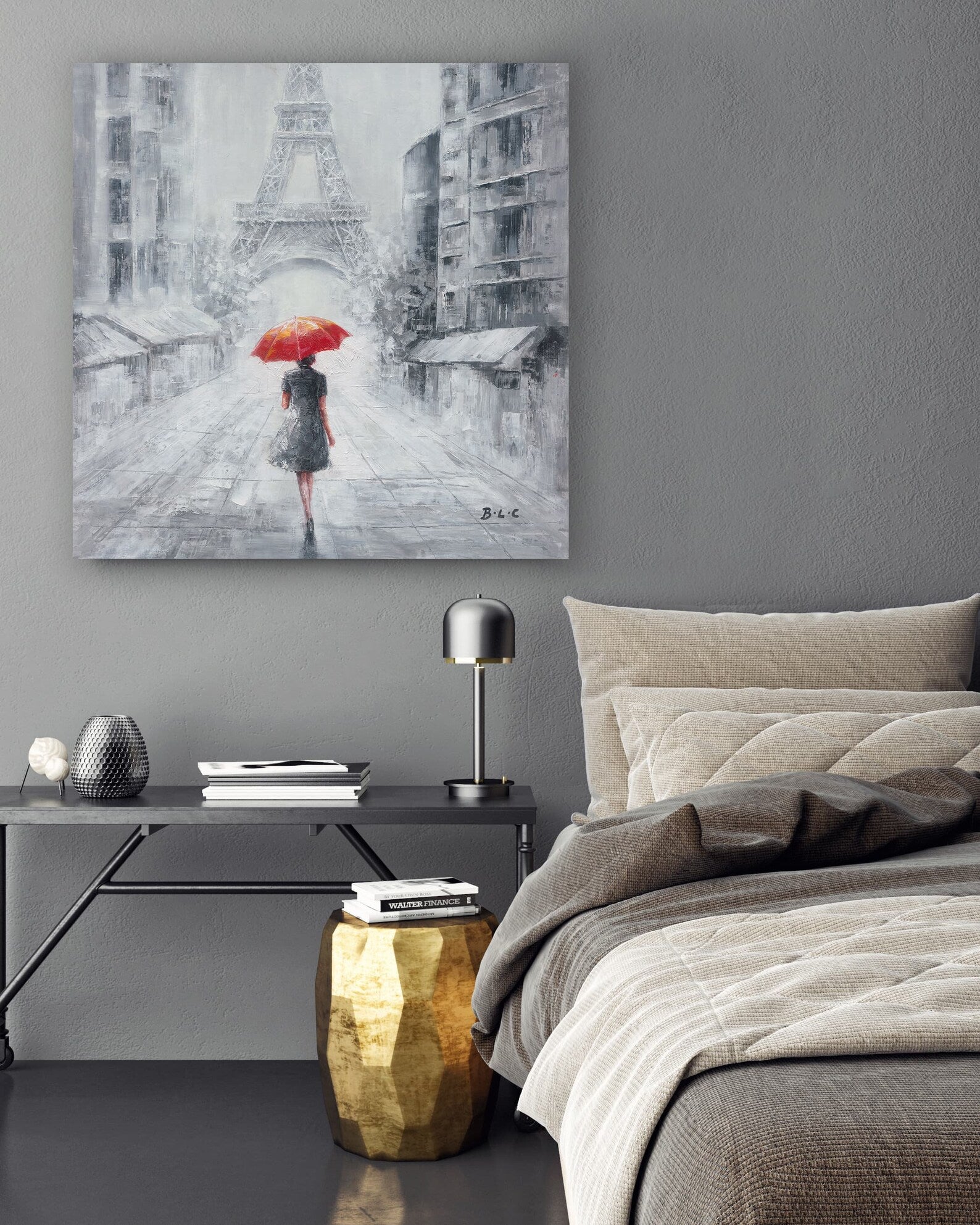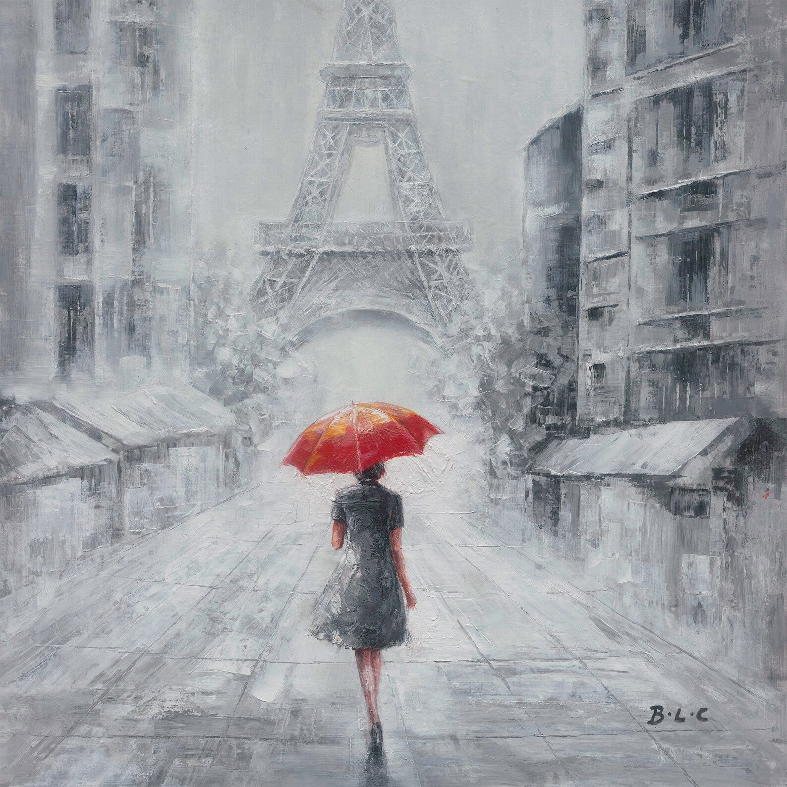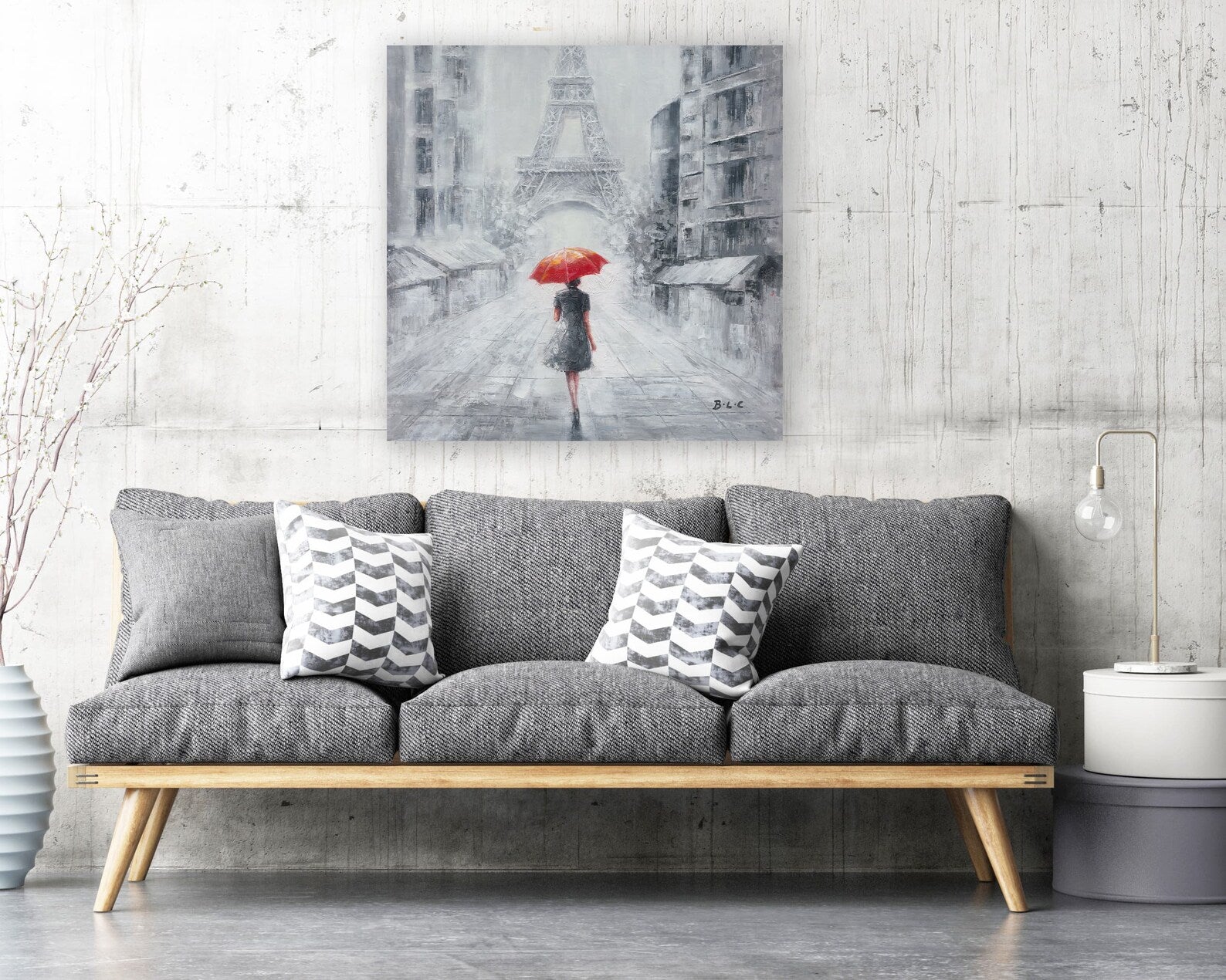 Original "Paris in the Rain" hand-painted artwork, wrapped canvas painting, suitable for living room, bedroom, foyer, bar, or office