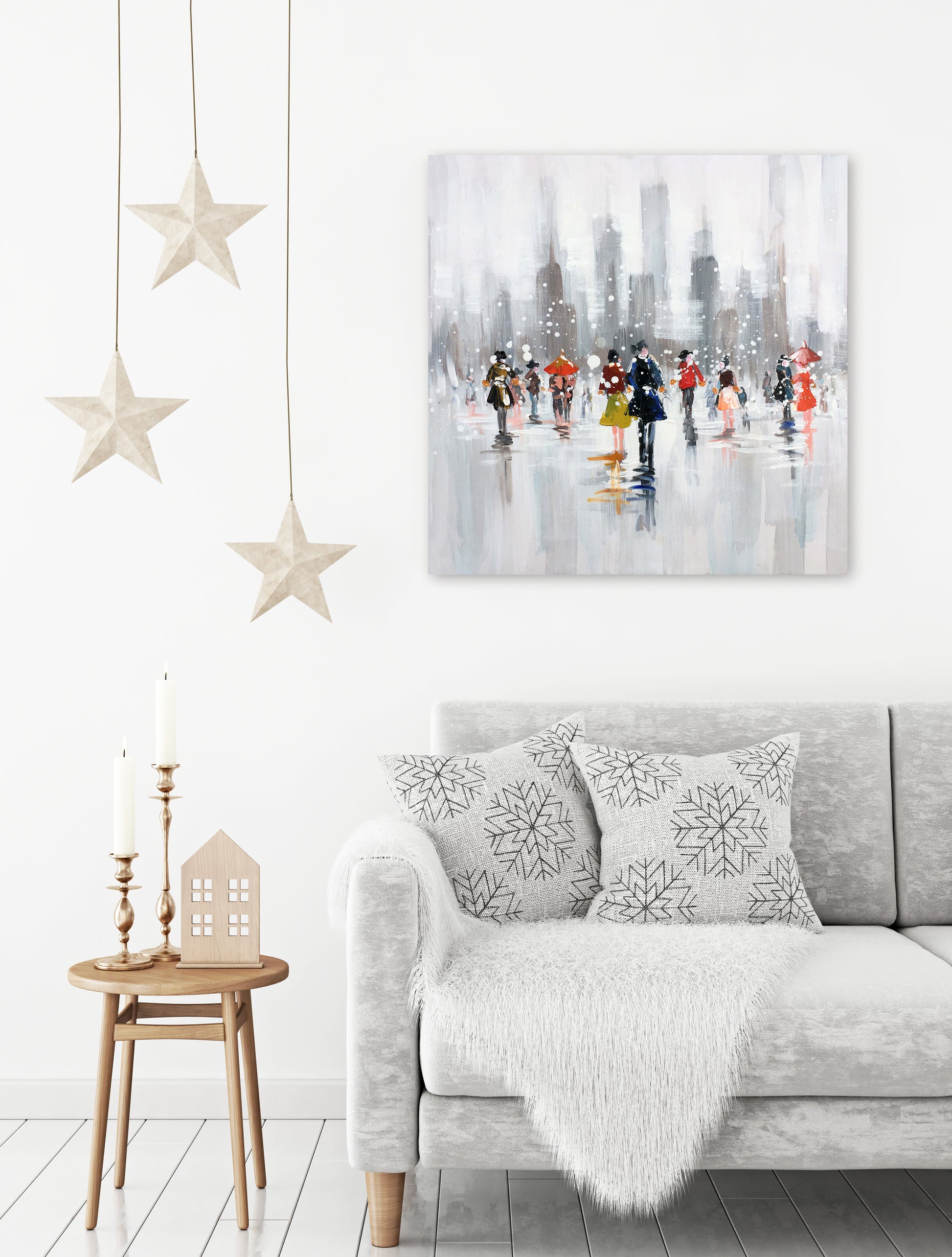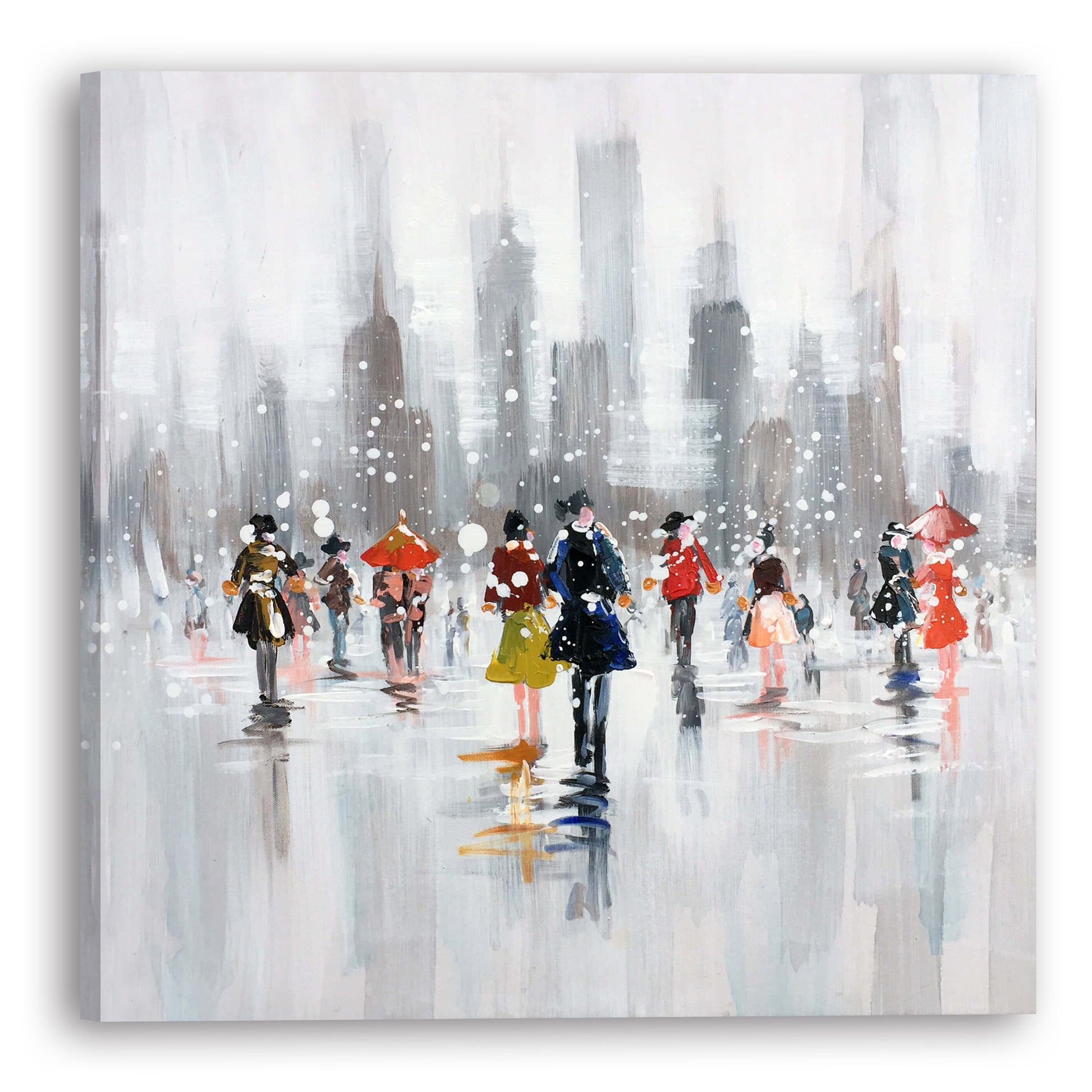 Original paintings stretched over 1.5" thick hardwood strips and entirely hand painted. Because of the artist's use of rich color layers, numerous brushstrokes, and various textures, the snow picture on the streets of New York beautifully captures the romantic scenario. This painting has been expertly hand-stretched in a cutting-edge stretch rod, and it is ready to hang straight out of the box. wide-format gallery wrapping canvas in a large format. Each of our works is as distinctive as a painting itself.