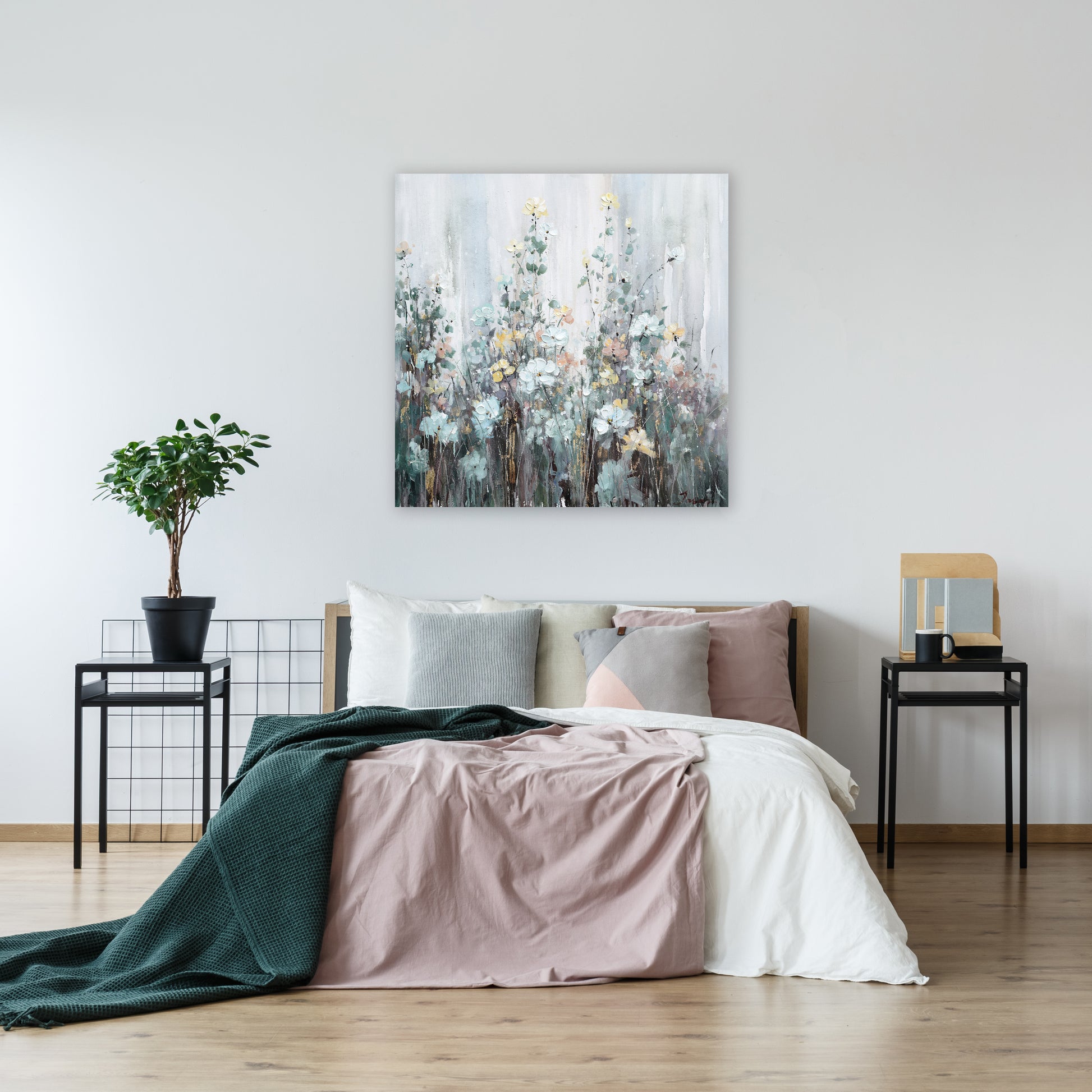 Empty entryway wall? Some spare space in the master suite? A boring bathroom? Wall art instantly turns any blank area into an eye-catching display, all while lending gallery-worthy appeal to your abode. Just take a look at this piece for example: it features an abstract oil painting, showcasing Wild flowers in nature. On gallery-wrapped canvas, and arrives with wall hook for easy mounting.
