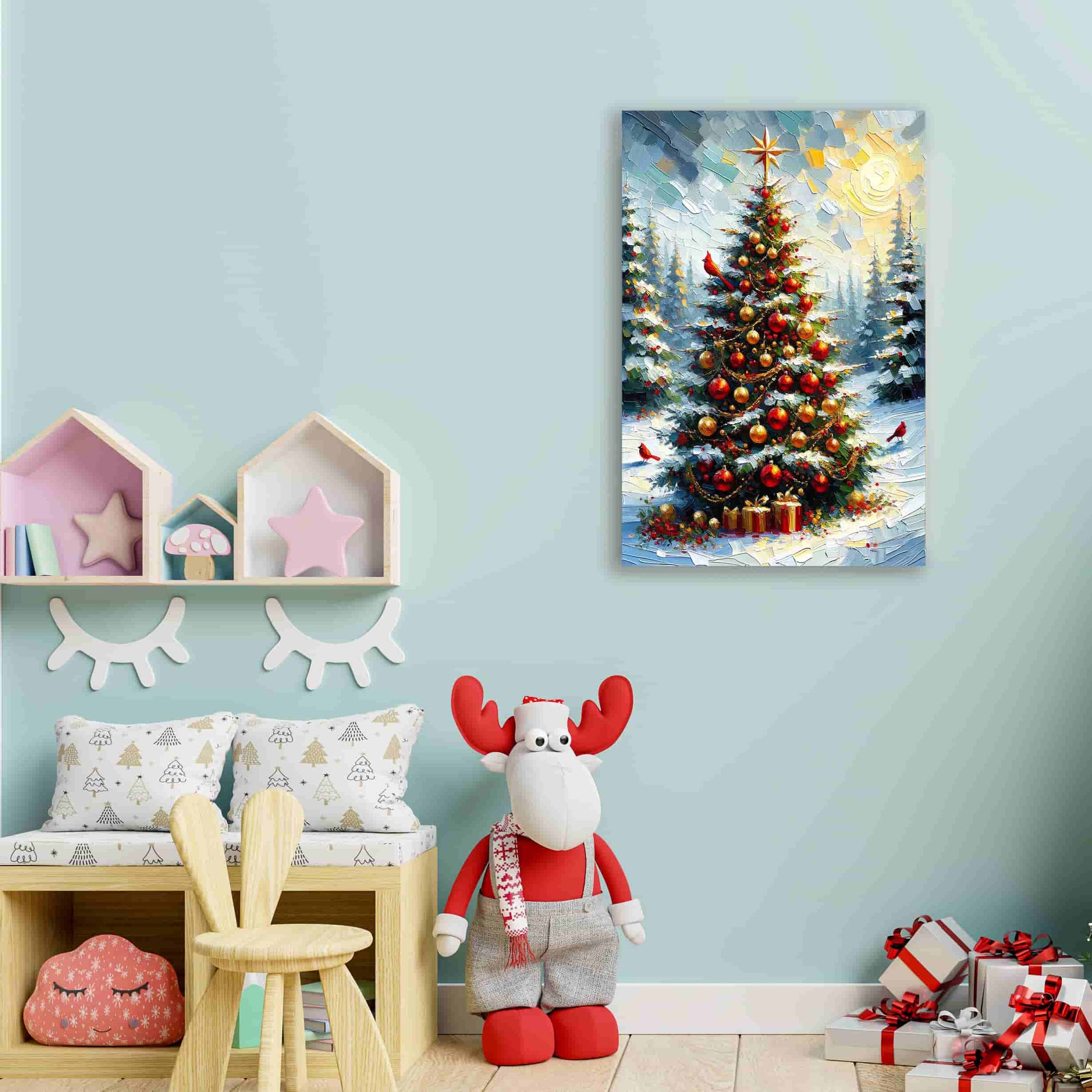 "Sunlit Festive Splendor" is an ideal focal point for your festive gatherings or a thoughtful gift for someone special. It embodies the heartwarming allure of Christmas mornings, filled with laughter, love, and the merriment of shared traditions.