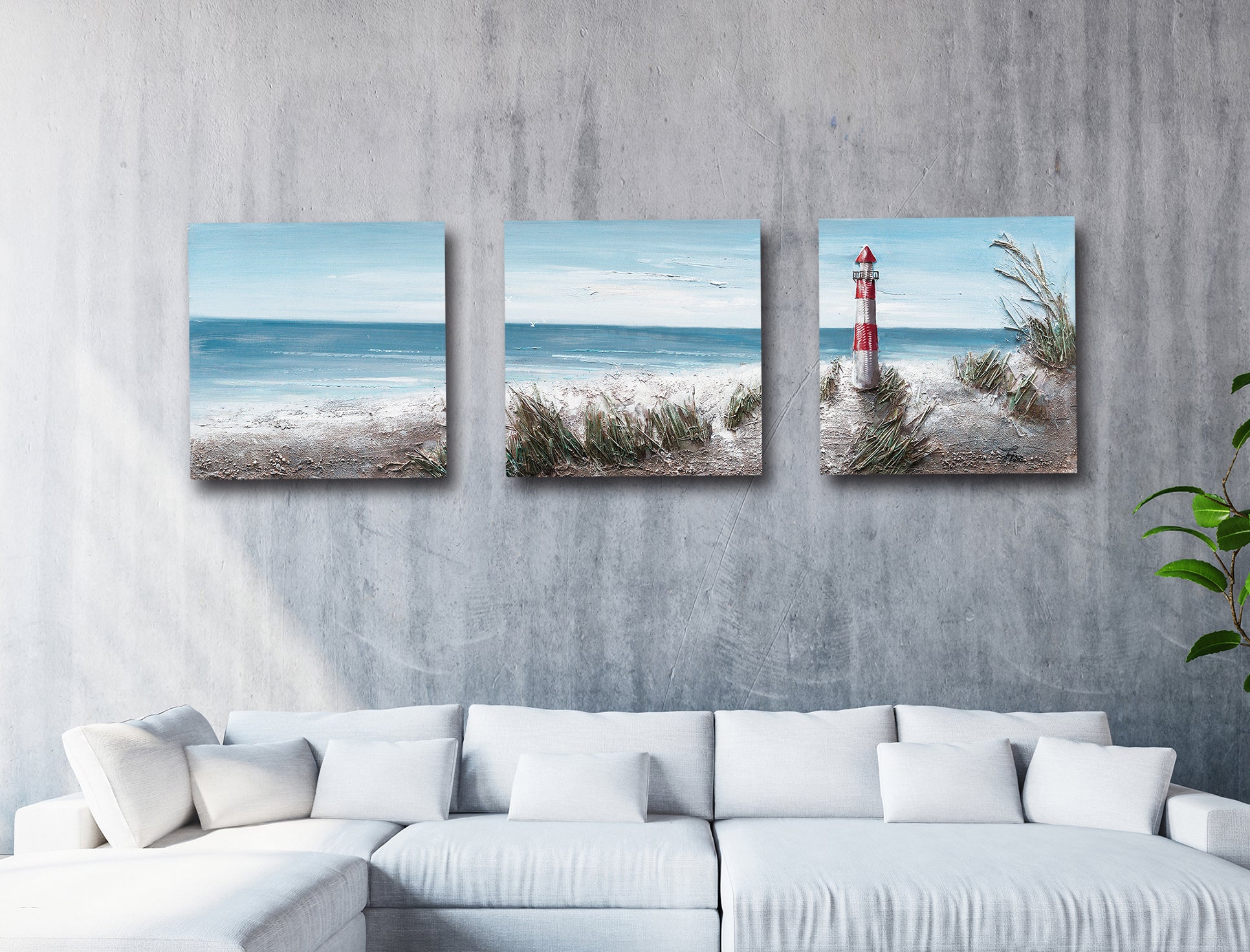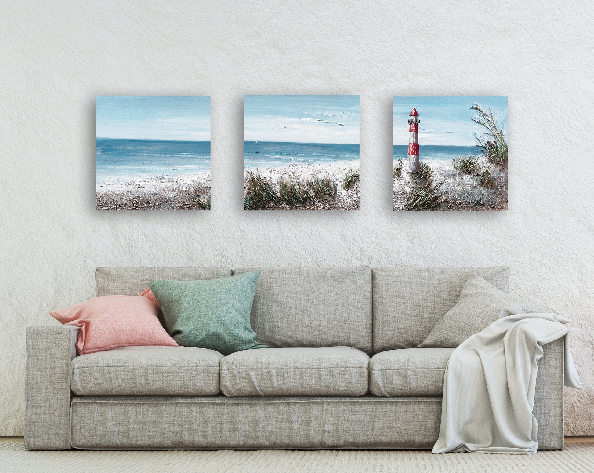 "The Lighthouse II" Hand Painted on Wrapped Canvas , 20"H x 20"W x 1.5"D-3piece