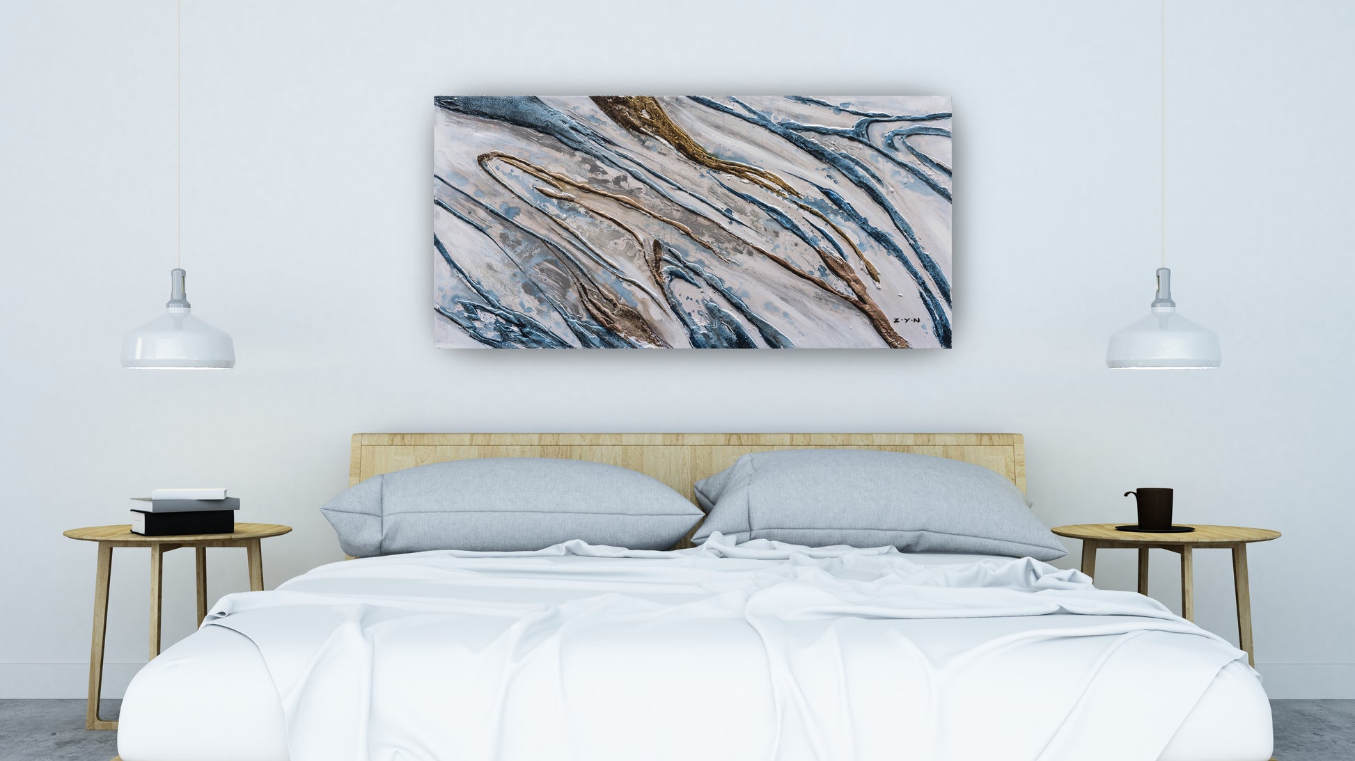 This beautiful piece of hand-painted contemporary artwork was made using oil paints on canvas. Perfect for your living room, dining room, or even your office space.