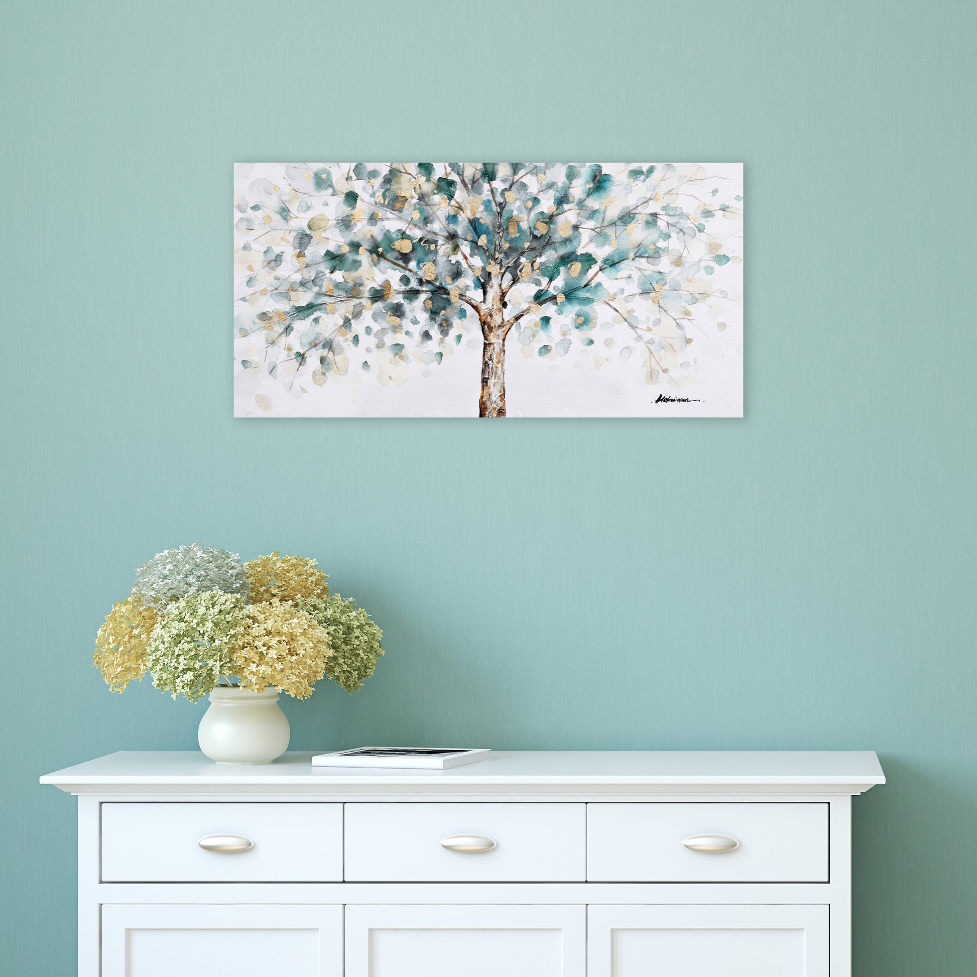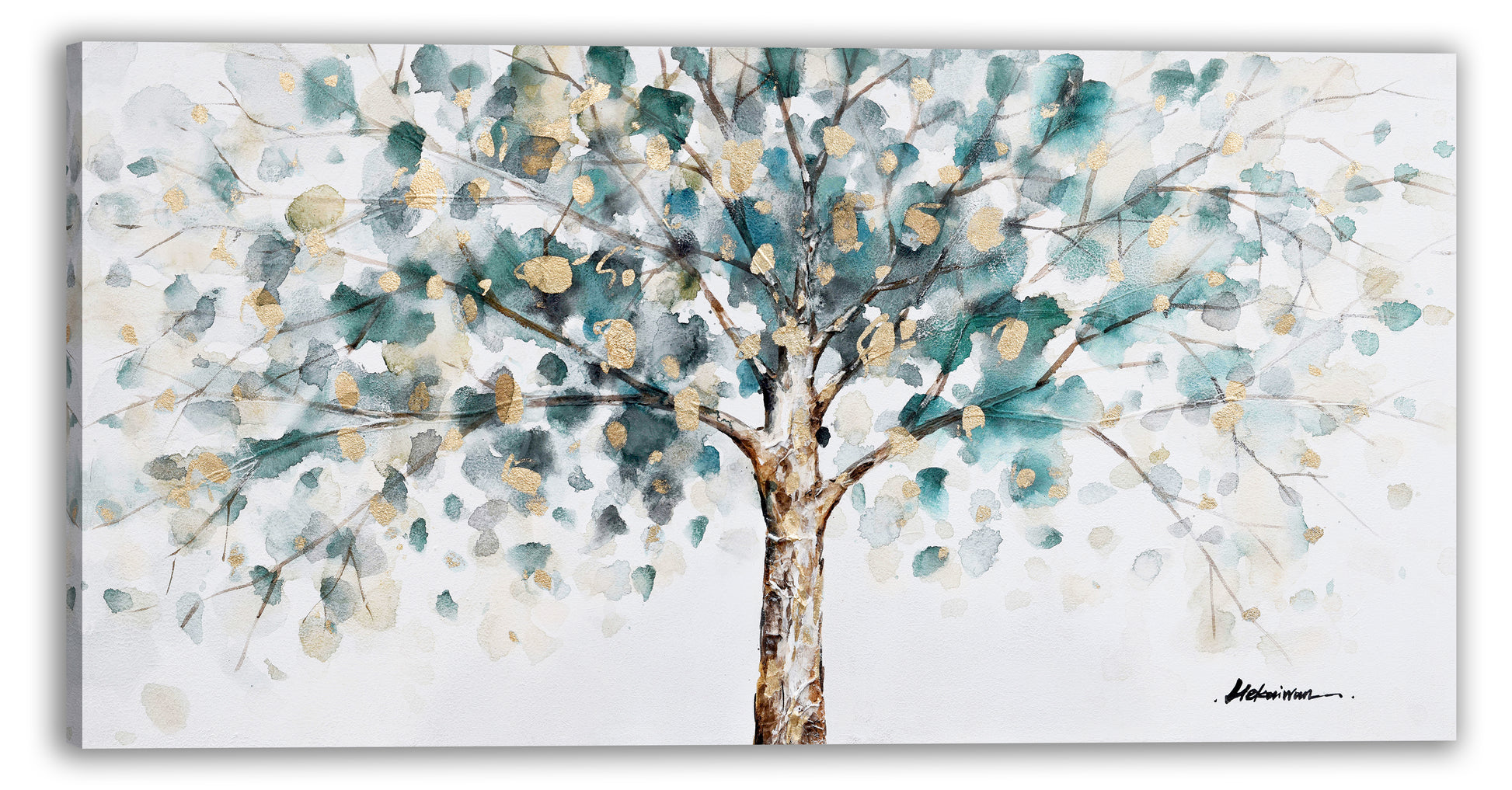 Wrapped Canvas "Golden Tree" Oil Painting. Canvas wall artwork for living room, bedroom, office